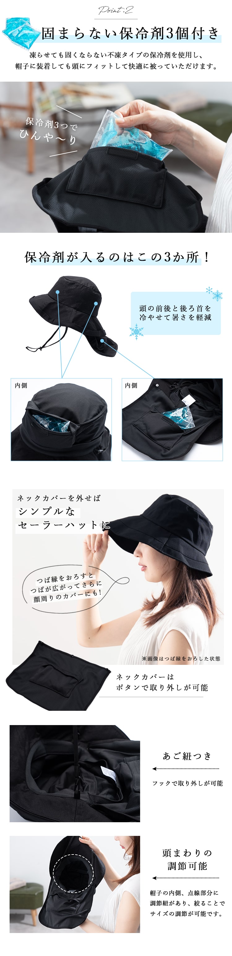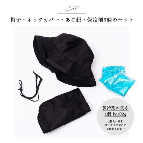 ・固まらない保冷剤が3個付属されており、帽子に忍ばせても形を崩すことなく冷やしてくれます。