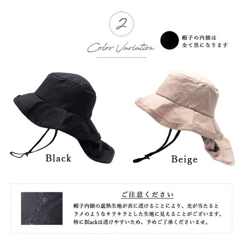 ・日除けたれつきで首の後ろもしっかりガード!・あご紐付きで風のある日でもしっかり固定