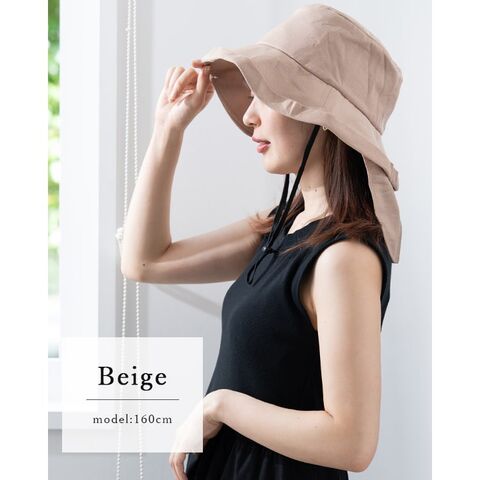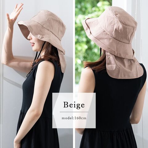 帽子 レディース uvカット セーラーハット 冷感 保冷剤3個付き 遮熱 遮光率99%以上 麻 たれ付き つば広 サイズ調整可 洗える あご紐 春 夏 Beige