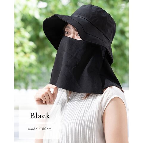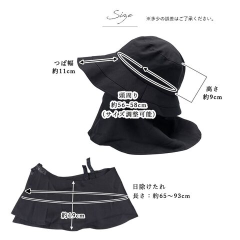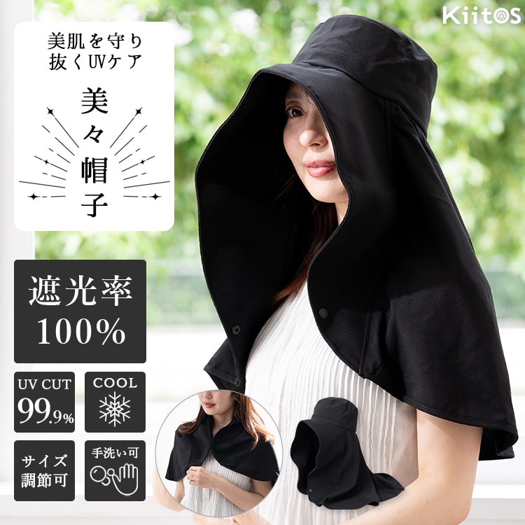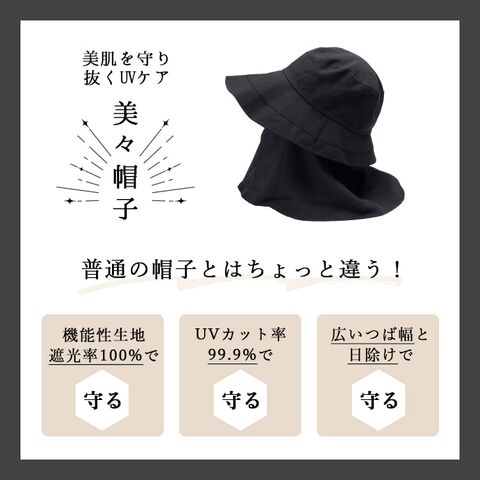 帽子 レディース ハット つば広 uvカット 日焼け防止 遮光100% 美々帽子 たれつき 洗える サイズ調整可 upf50+ 上品 大人 春 夏 秋 Black