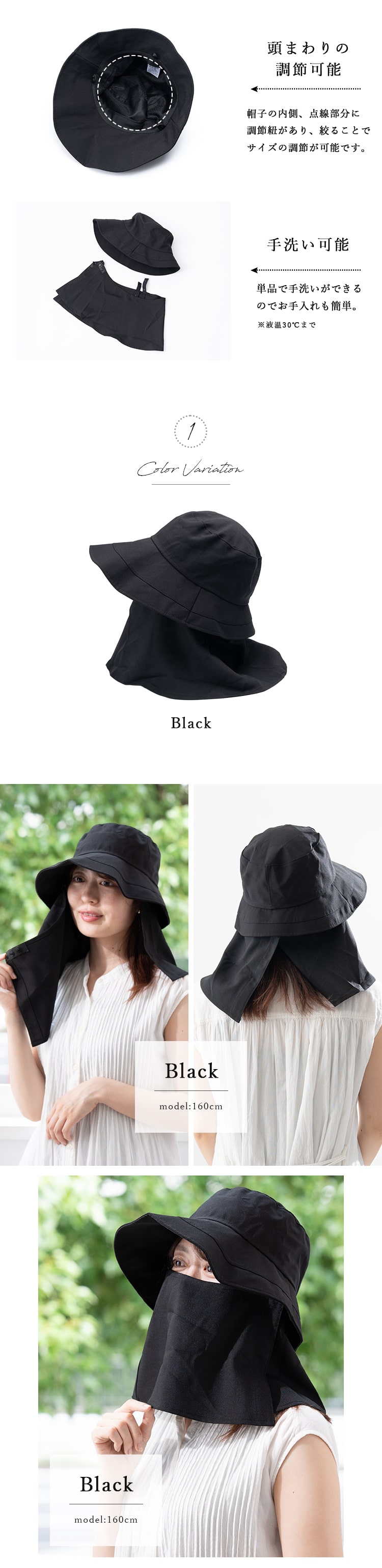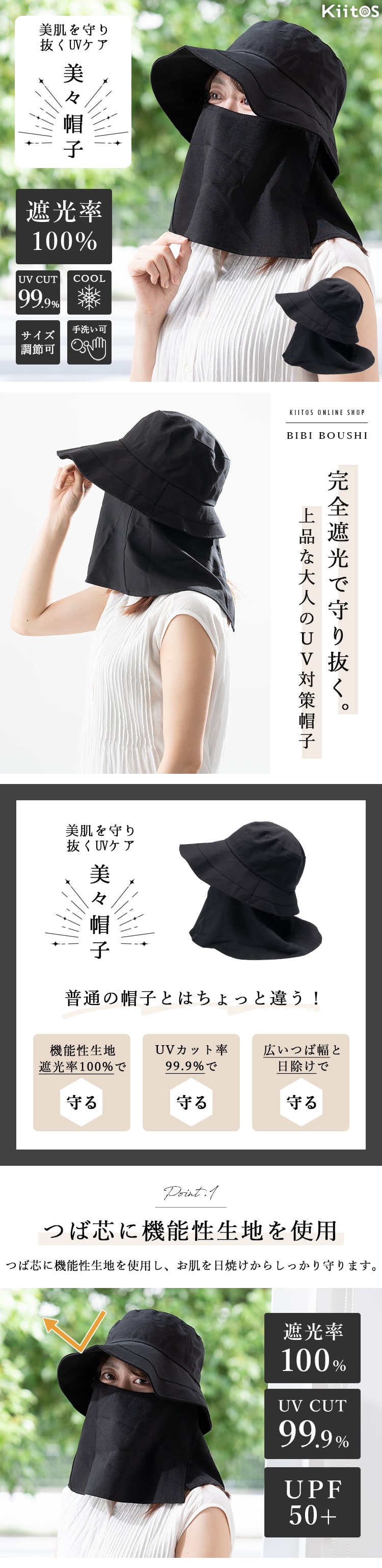 遮光率100%と高い機能性で、お出かけ時の日差しから顔周りをしっかりガードします。