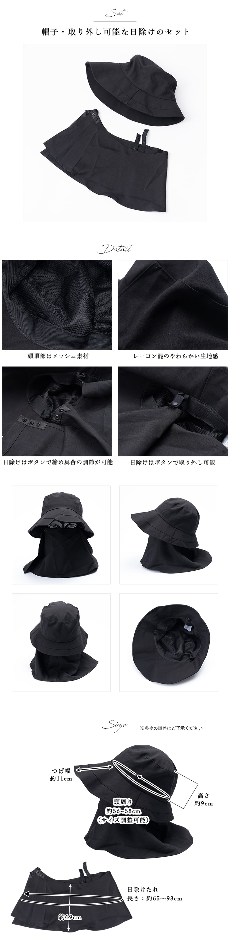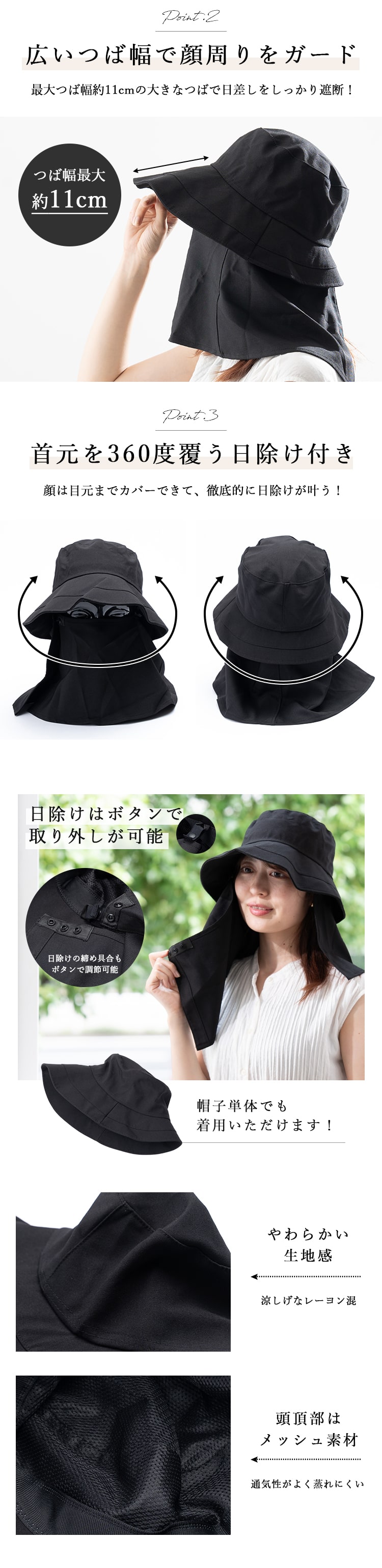 ・首回りを360度ガードする日除けたれつき!取り外し可能。