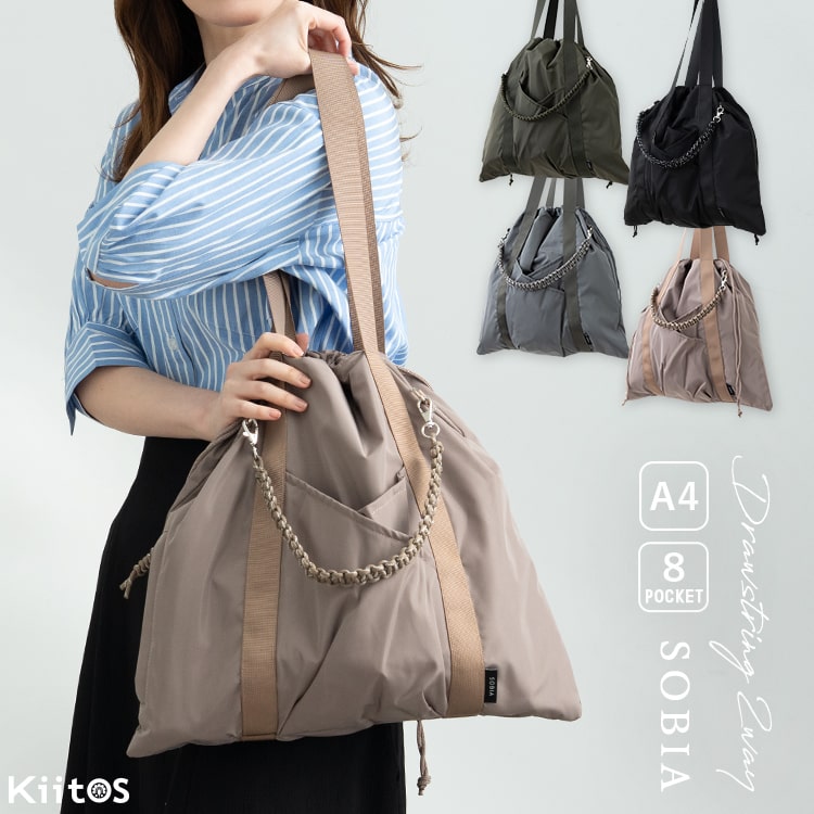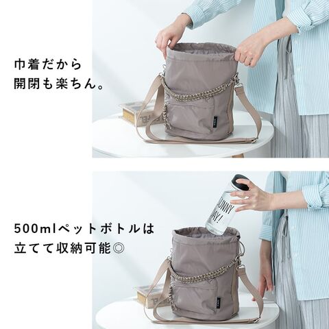 ショルダーバッグ レディース 斜め掛け 大人 巾着 小さめ 2way トート a5 マチ広 軽量 ドロスト コード編みハンドル Ivory