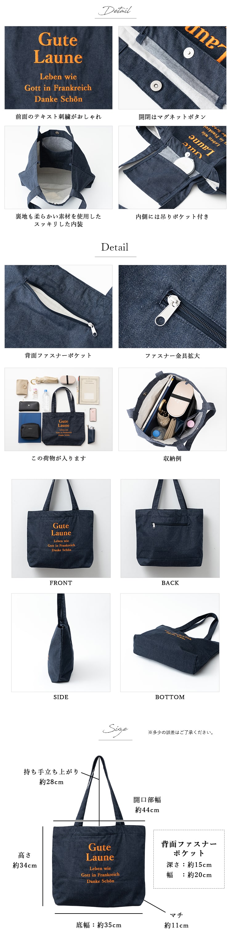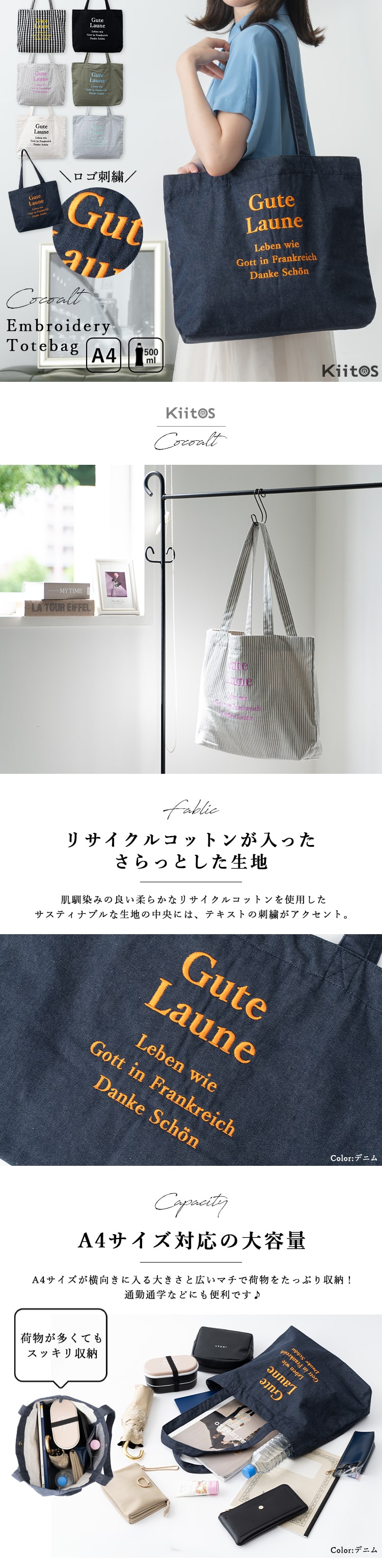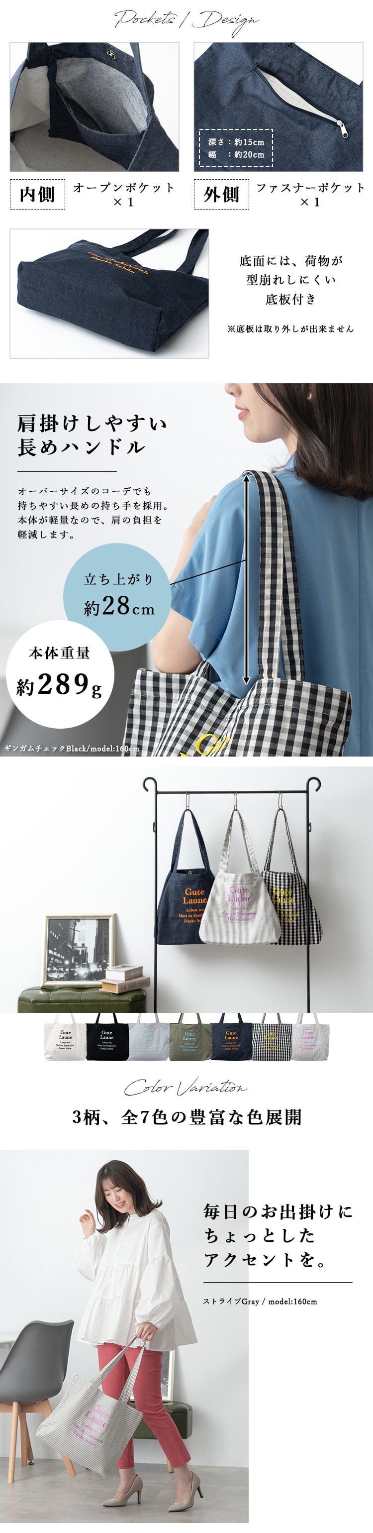 トートバッグ レディース キャンバス 大きめ a4 肩掛け 通勤 通学 おしゃれ ロゴ 刺繍 軽量 うちわが入る Ivory