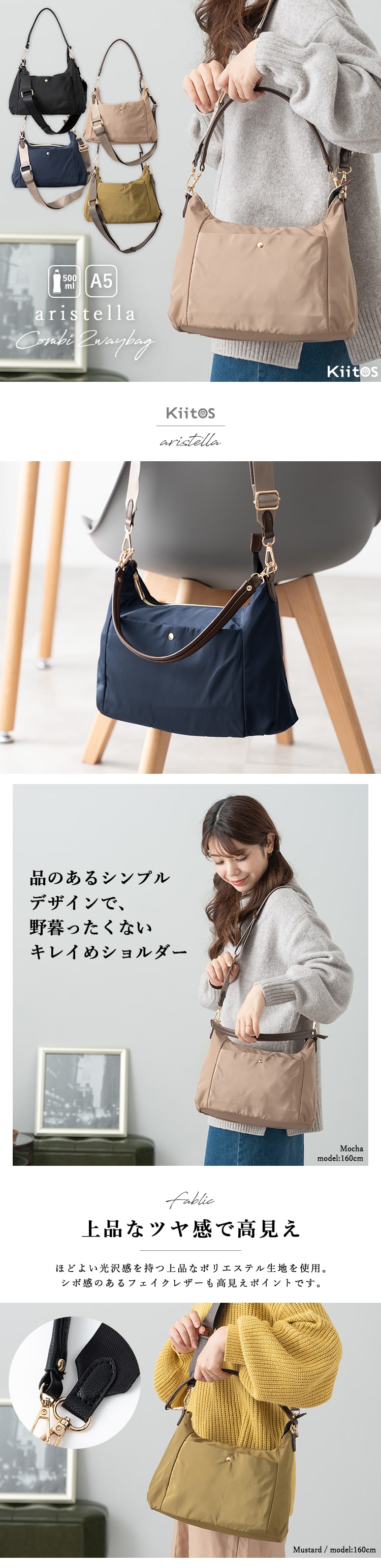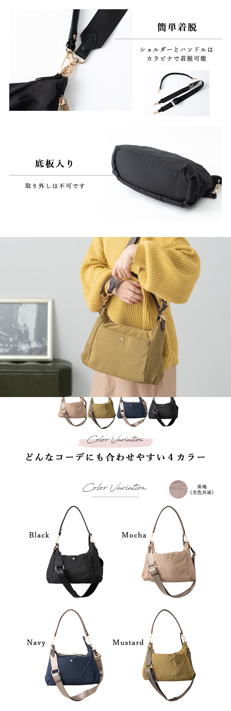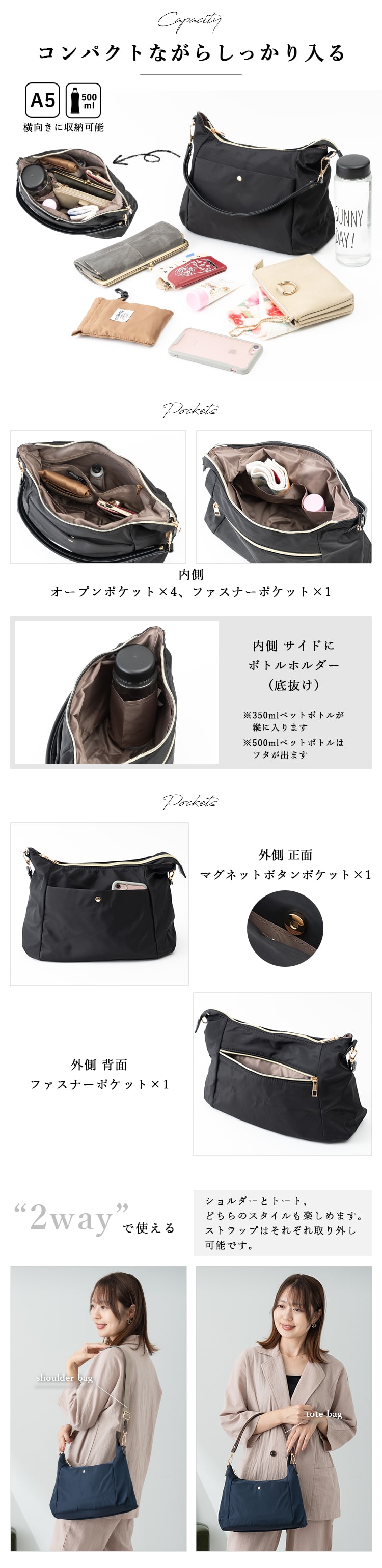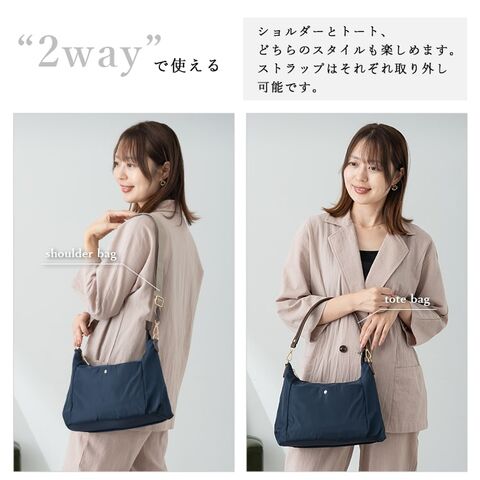 取り外し可能なストラップ付きでショルダーとトートの2スタイルが楽しめます。