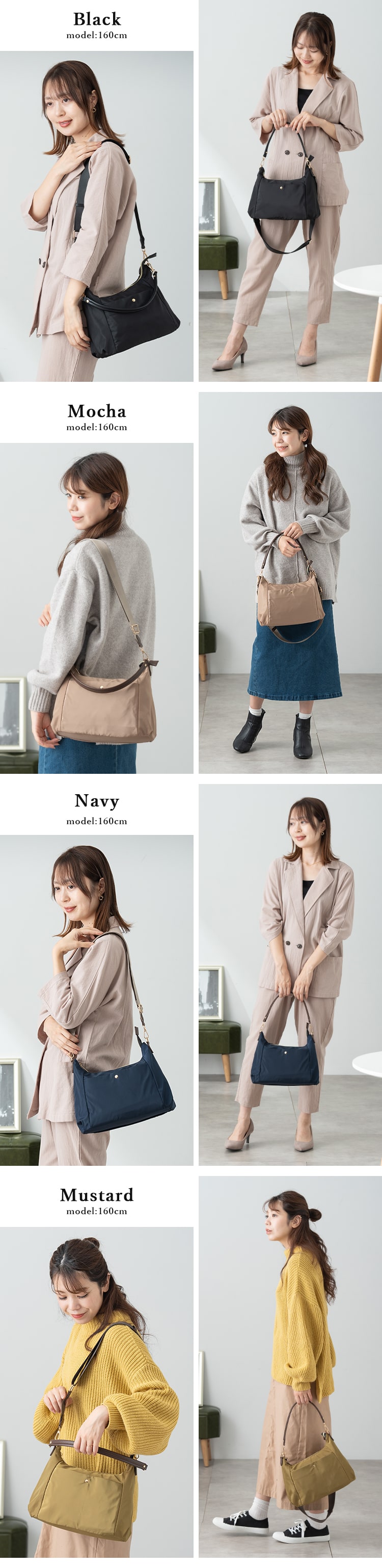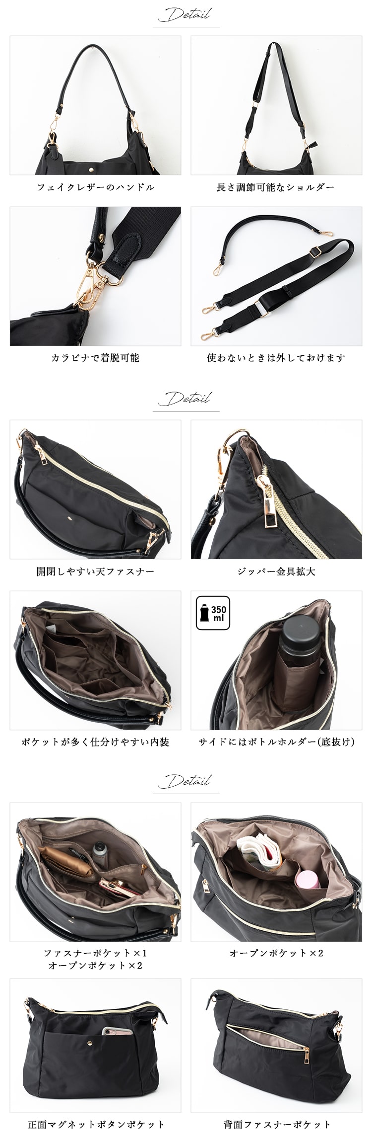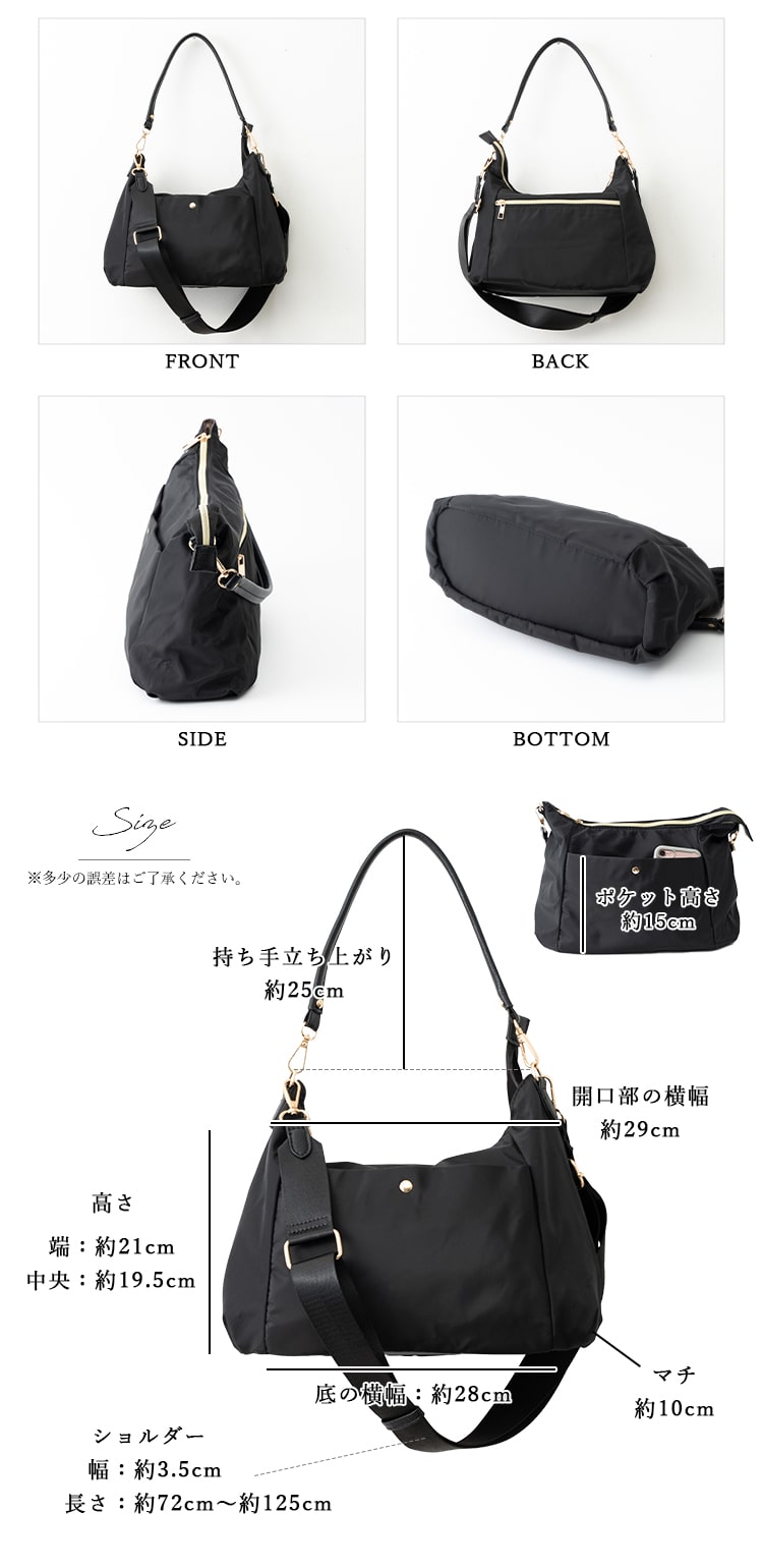 ショルダーバッグ レディース 斜め掛け 上品 軽量 合皮 ナイロン 半月 2way a5 きれいめ おしゃれ 大人 通勤 通学 30代 40代 50代 Black