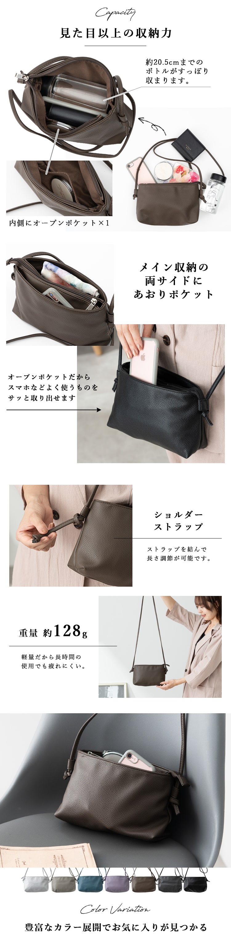 シンプルだからこそ使いやすい軽量な合皮ショルダーバッグ。