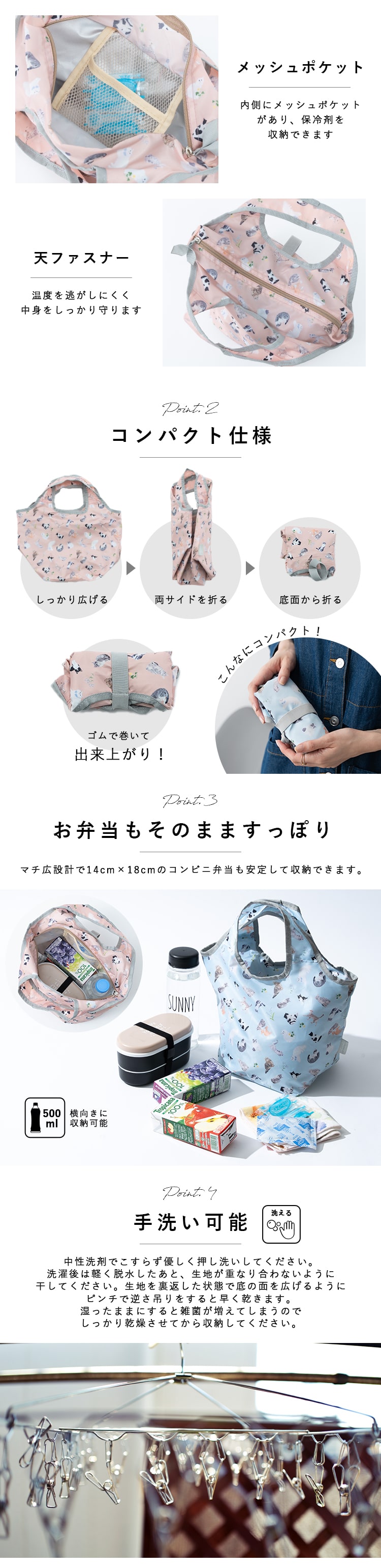 通勤通学のランチバッグや毎日のお買い物にちょうどいいサイズ感の保冷バッグです。