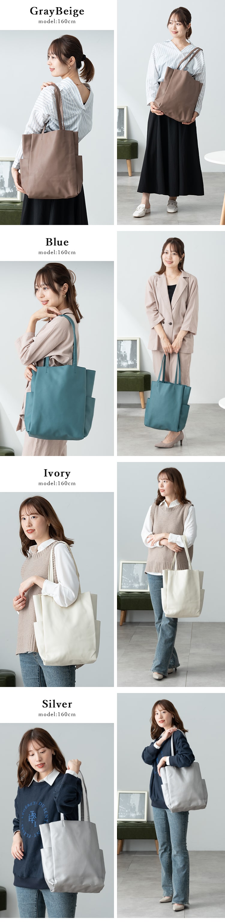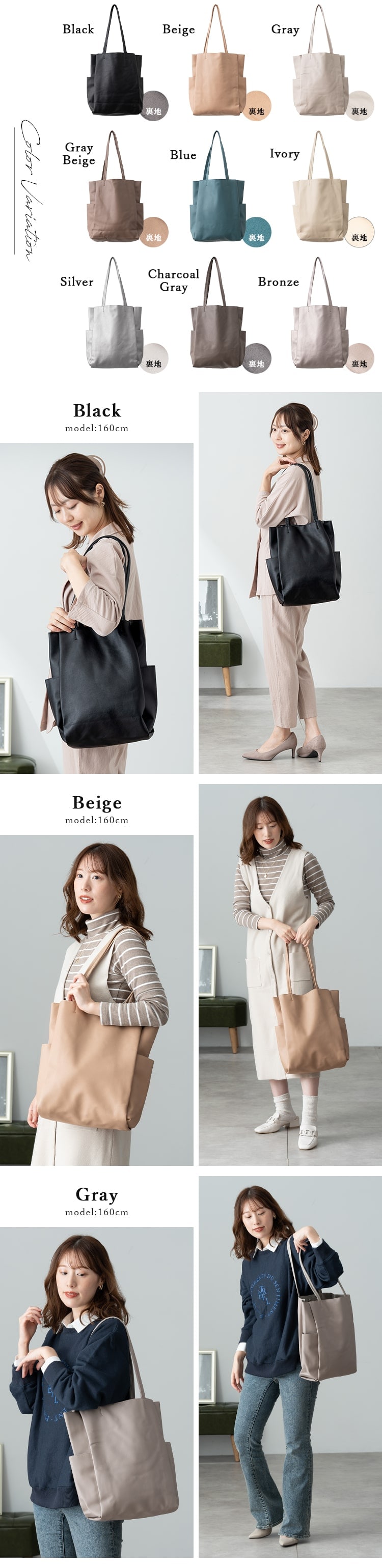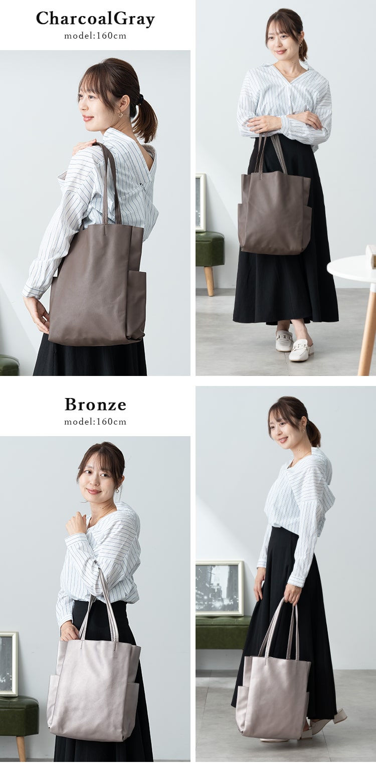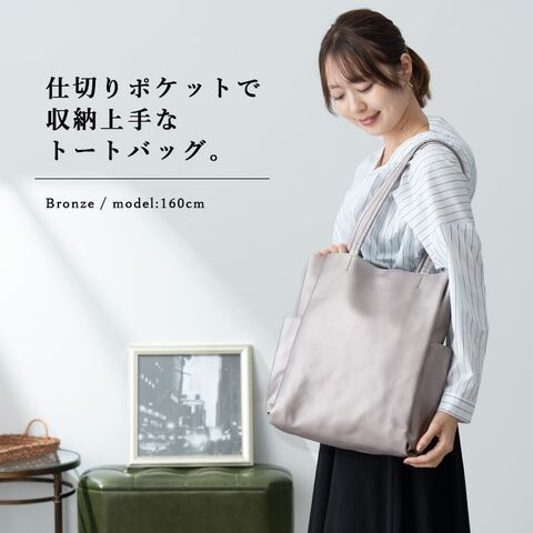 くたっと感のある柔らかな合皮素材で体にフィットするトートバッグ。