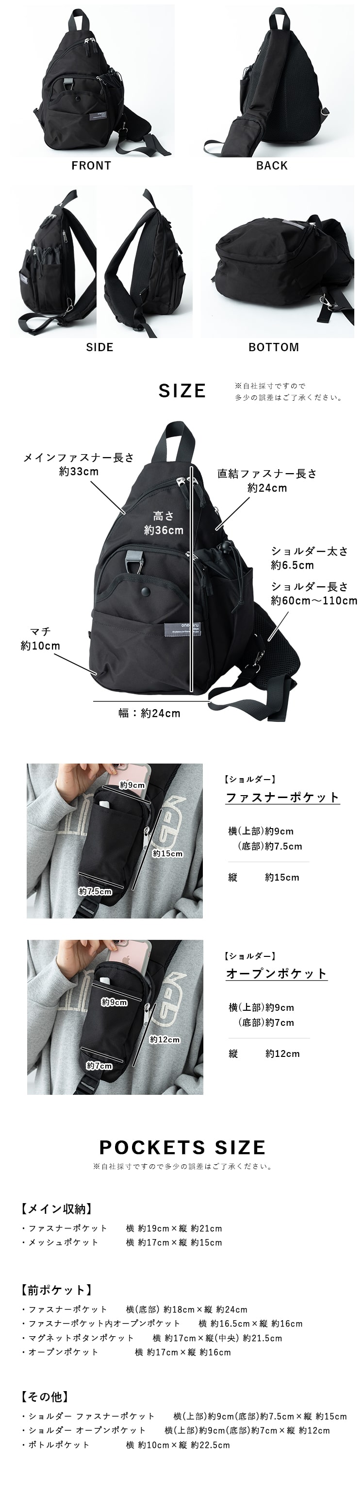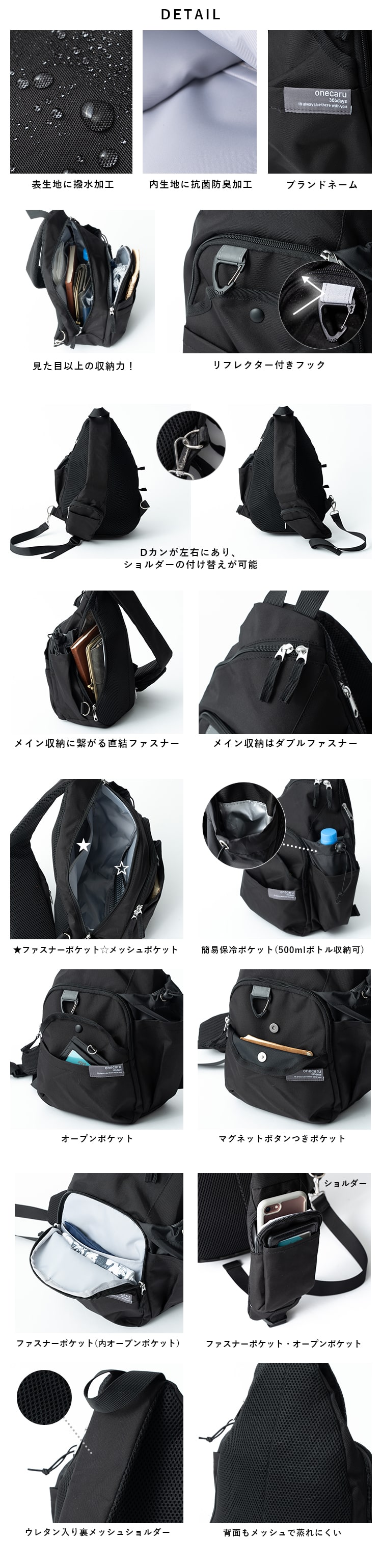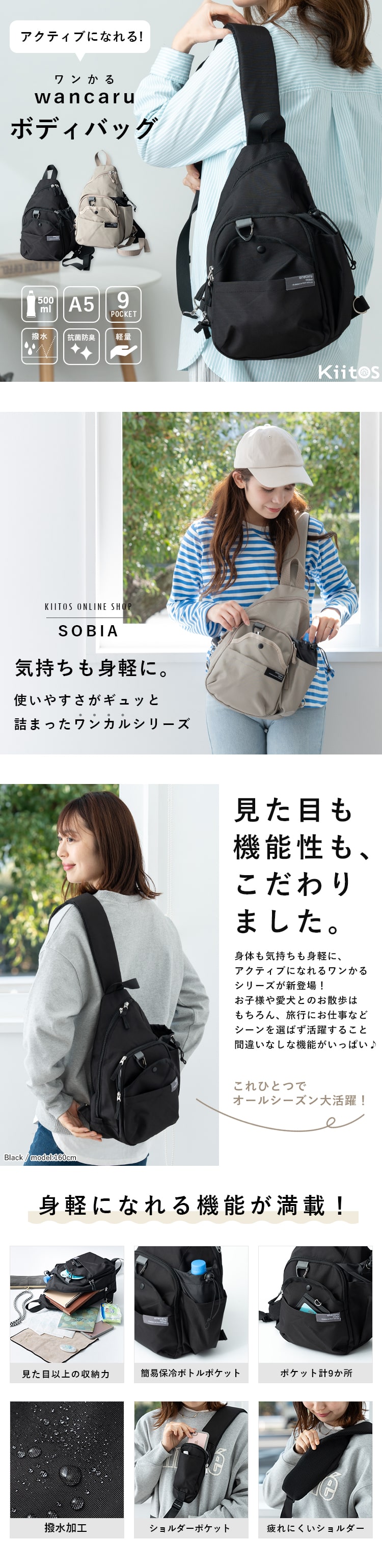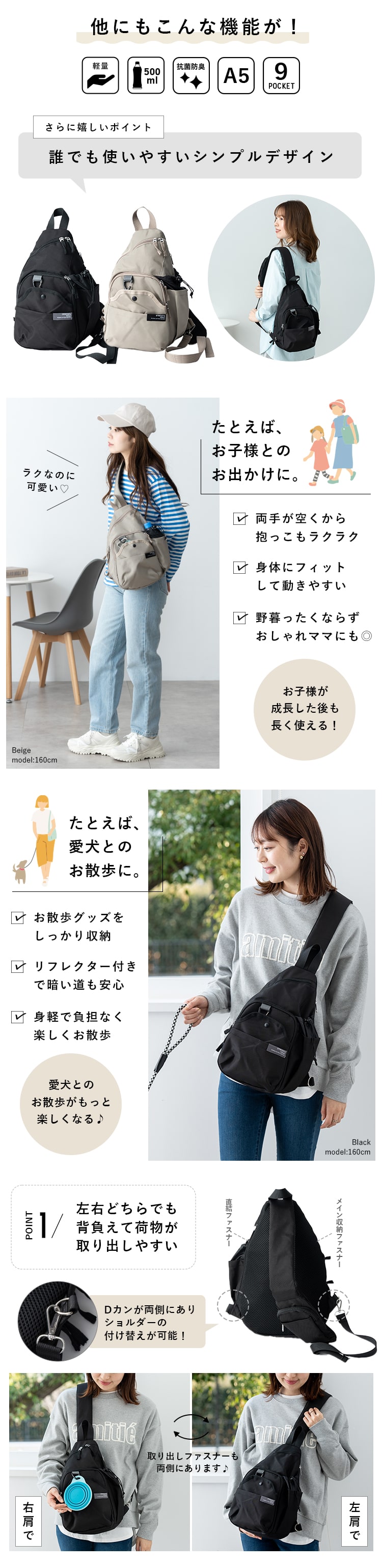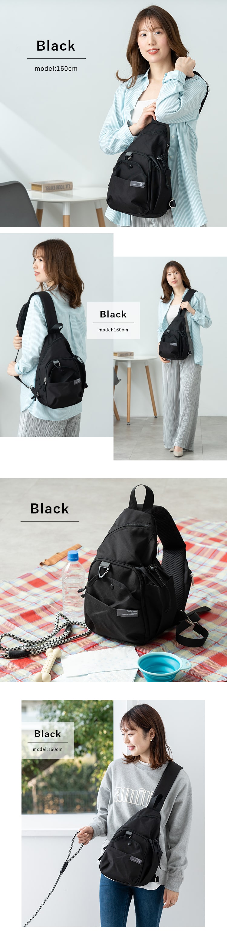 ボディバッグ レディース おしゃれ 犬 散歩バッグ 撥水 軽量 a5 大容量 きれいめ マザーズバッグ ペットボトル 保冷ポケット 9ポケット Black