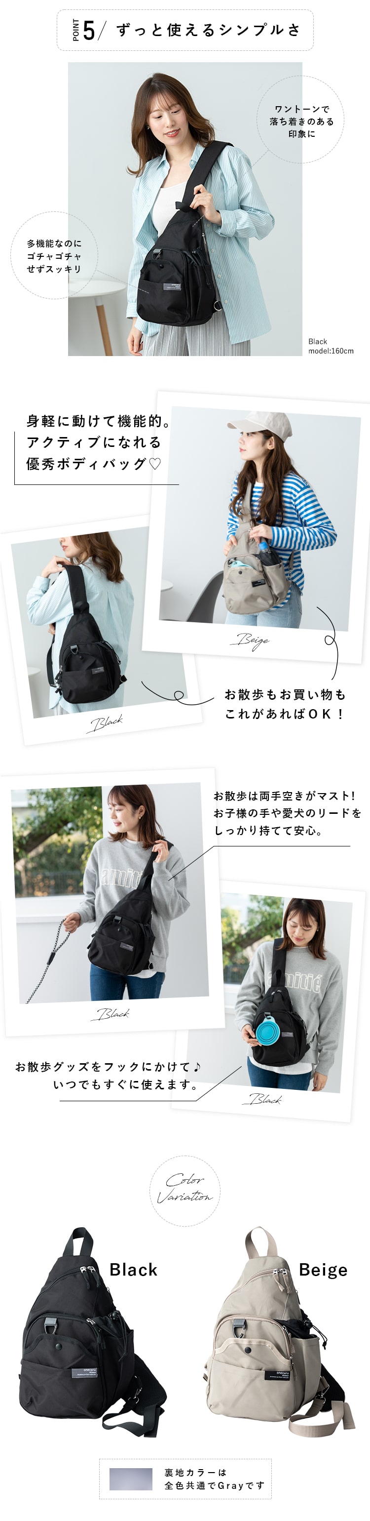 お子様や愛犬とのお散歩、お買い物などにぴったりなボディバッグです。