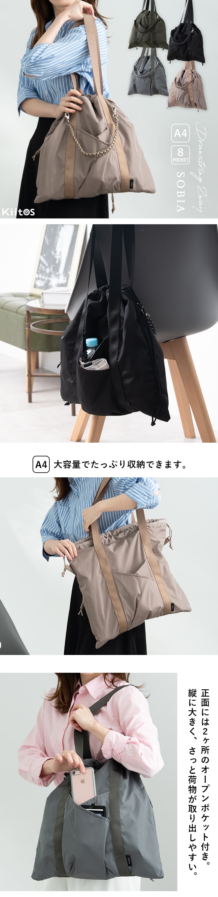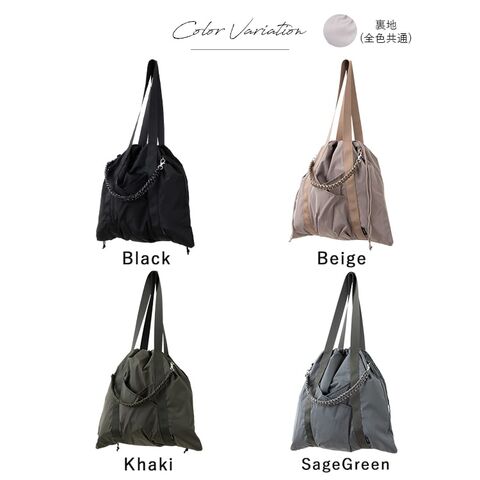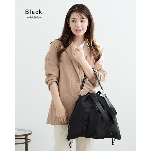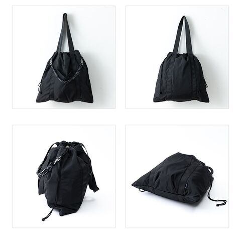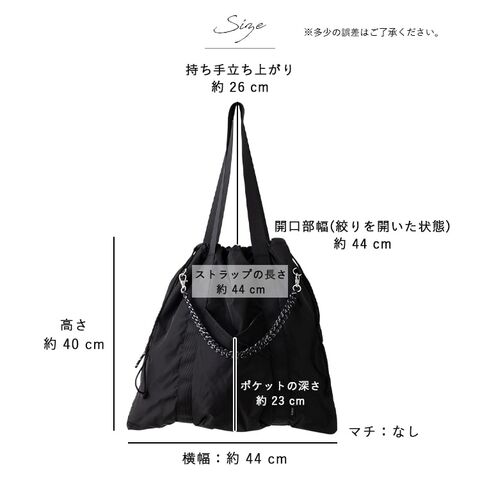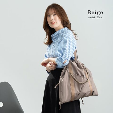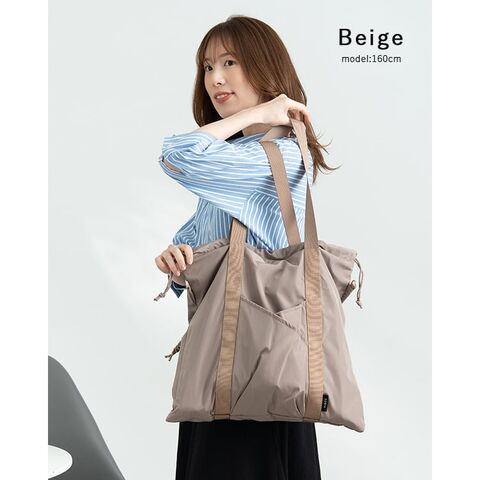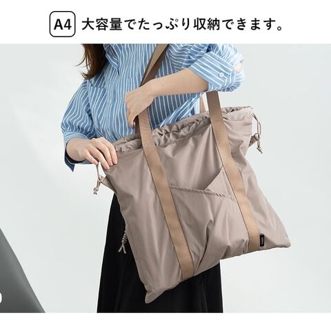 気分に合わせて持ち方がアレンジできる、大容量コード編み巾着トートバッグ。