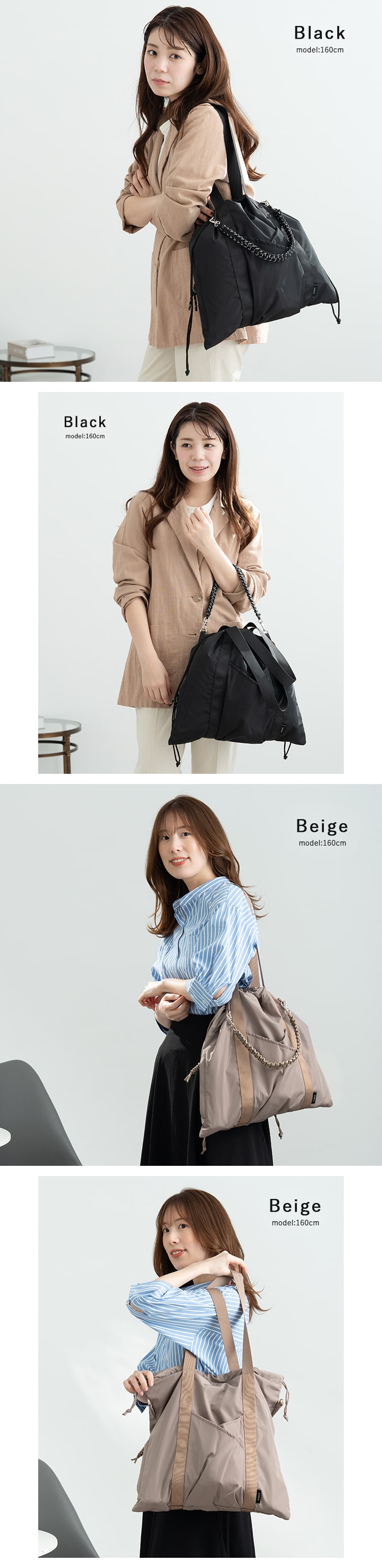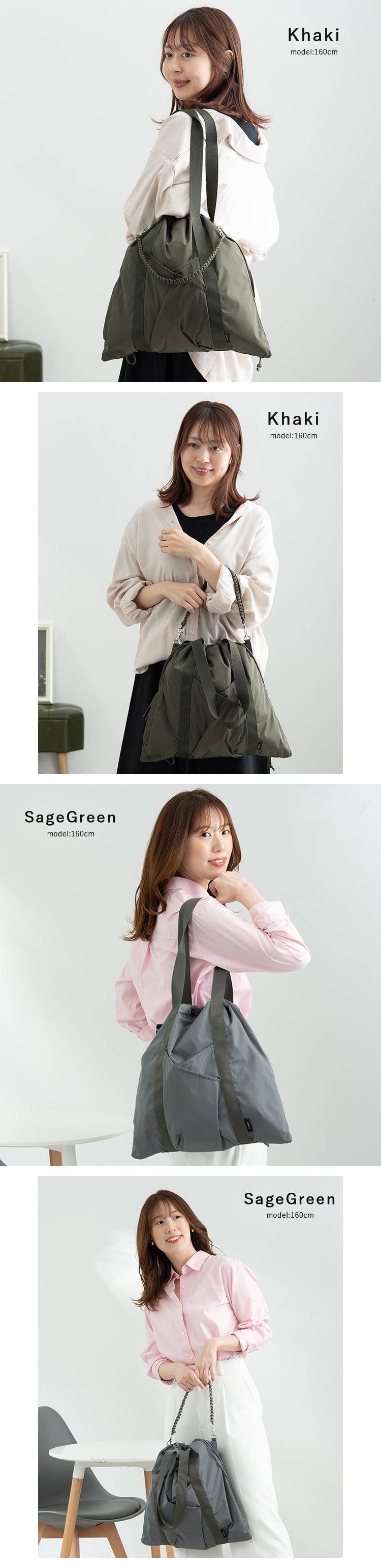 何気ないお出かけや、おしゃれのワンポイントとして楽しみたい時は巾着を絞ってクシュっと抜け感。