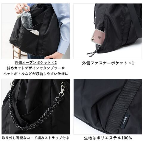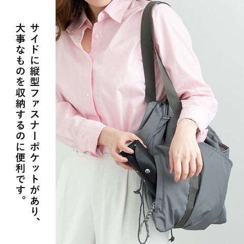 サイドにもファスナーポケットがあるので、さっと取り出したいけど無くしたくないスマートフォンやお財布などを入れるのにおすすめ♪