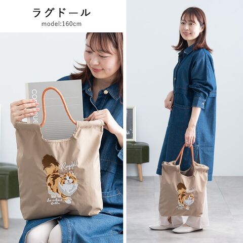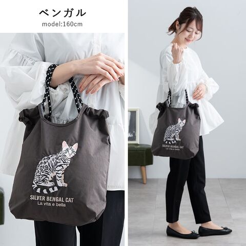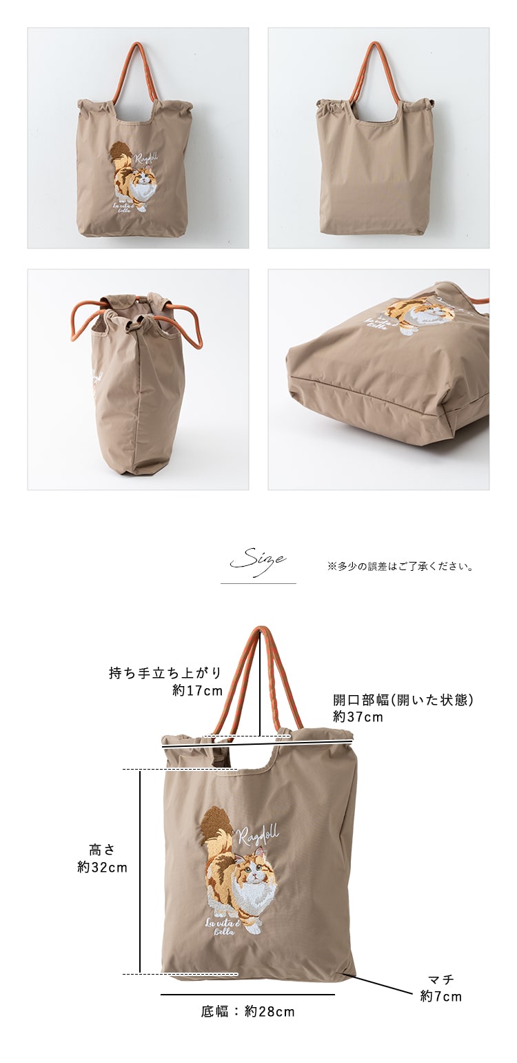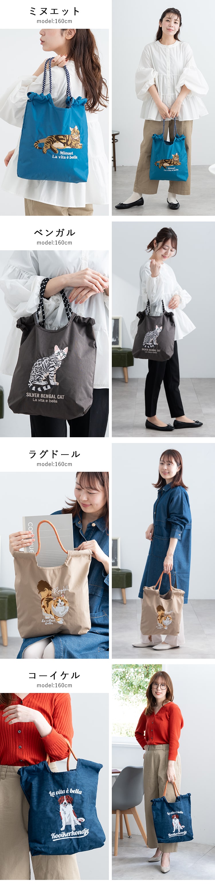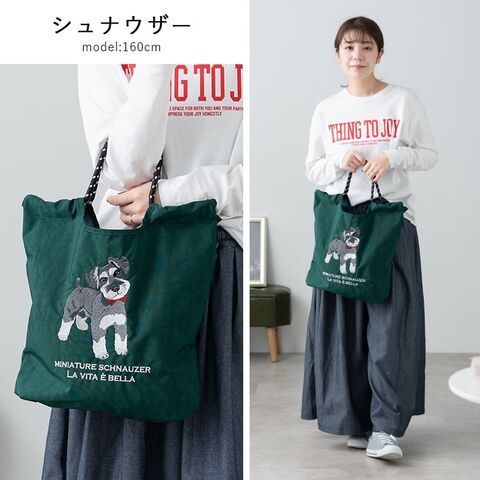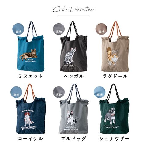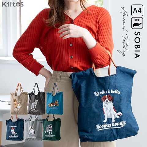 トートバッグ レディース 刺繍 アニマル a4 大容量 軽量 猫 犬 コードハンドル 肩掛け ナイロン 通勤 通学 おしゃれ エコバッグ ギフト コーイケル