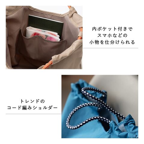 ハンドルはトレンドのコードデザインで、肩掛けにすることも可能です。