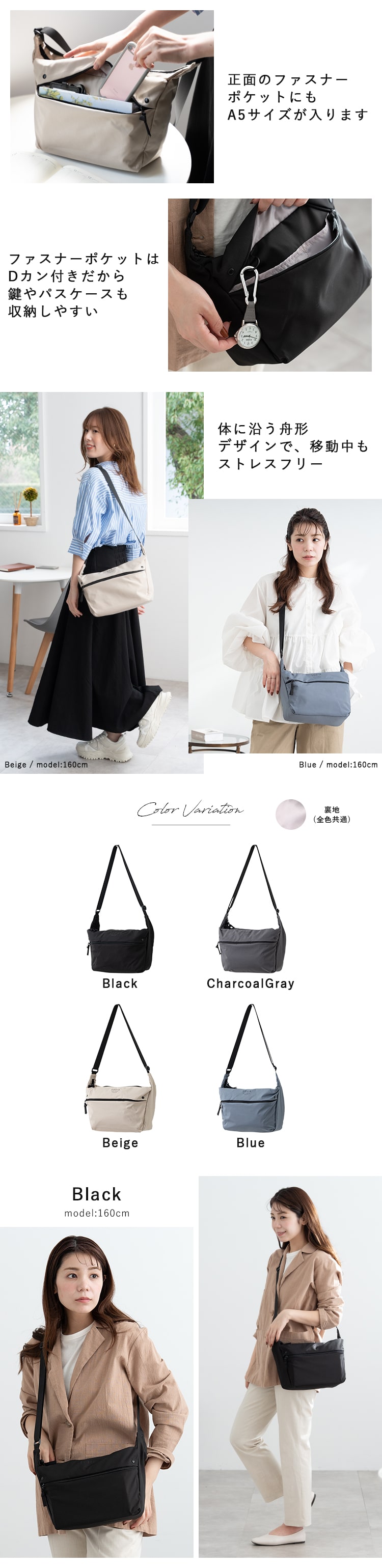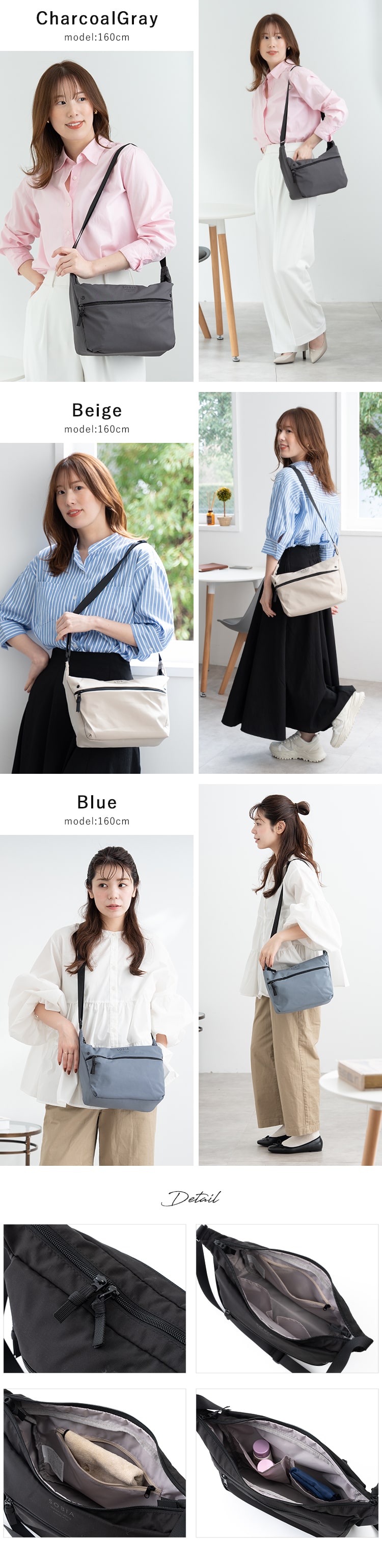 ショルダーバッグ レディース 軽量 撥水 a5 斜め掛け 大人 おしゃれ 通勤 通学 ペットボトル ファスナー付き リップストップ リサイクル素材 CharcoalGray