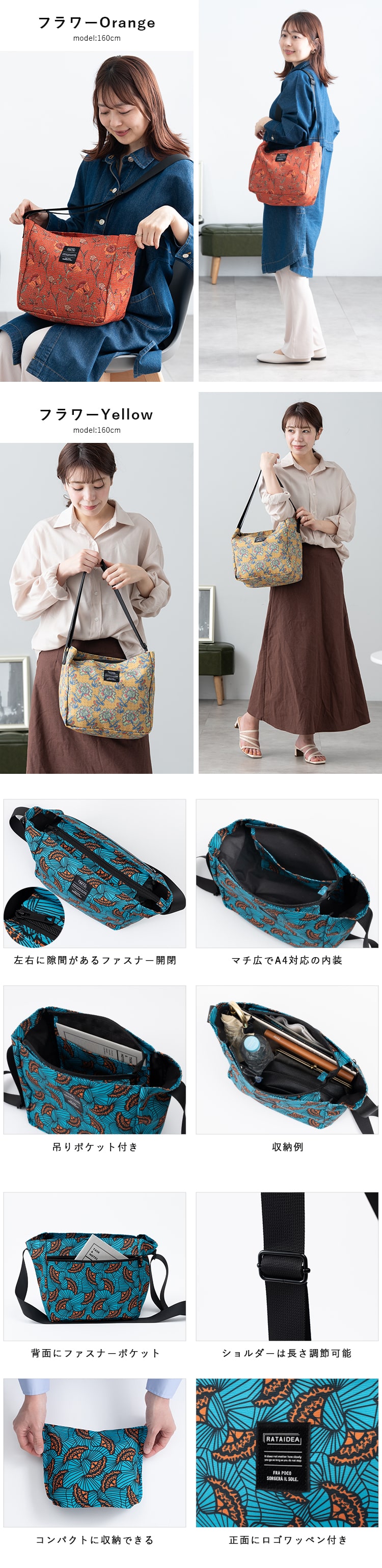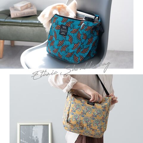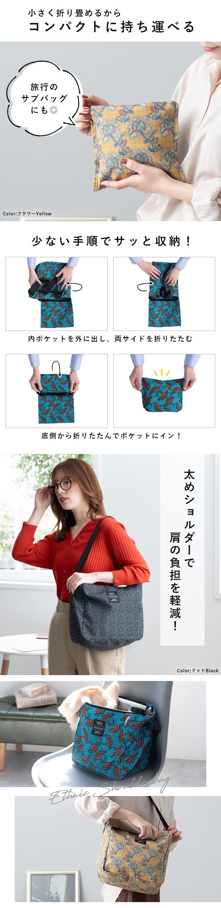 ショルダーバッグ レディース 折りたたみ 通勤 通学 旅行 a4 大容量 ファスナー付き 斜め掛け おしゃれ 大人 マチ広 民族柄 フラワーYellow