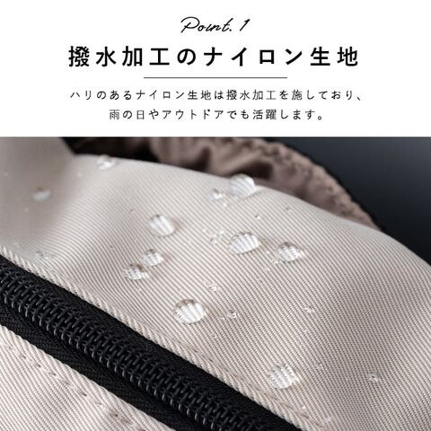 はっ水加工なので雨の日やアウトドアでも安心して使えます。