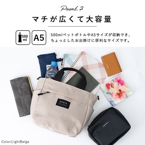 長財布やペットボトルもしっかり入り、日常使いに最適。