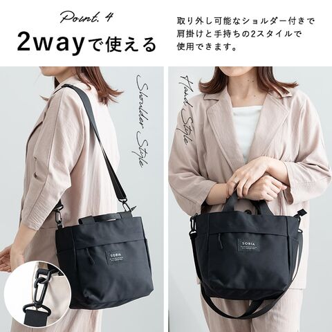 ショルダーは取り外し可能で、肩掛けと手持ちの2スタイルで使えます。