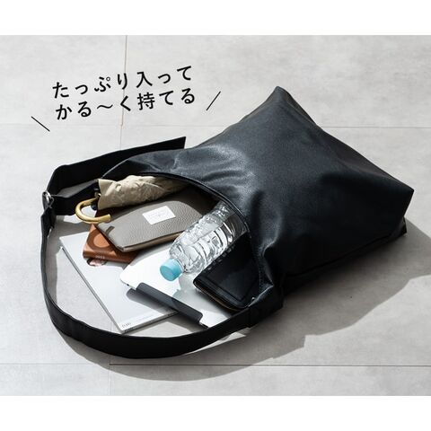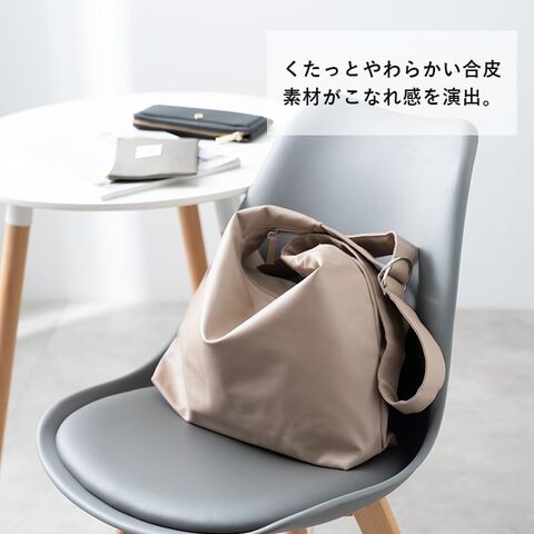 やわらかく、細かいシボ感のある合皮素材なので、堅苦しくなく、こなれた印象を演出します。