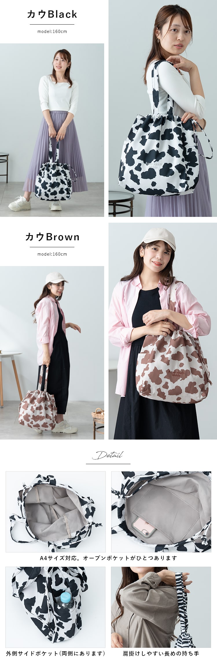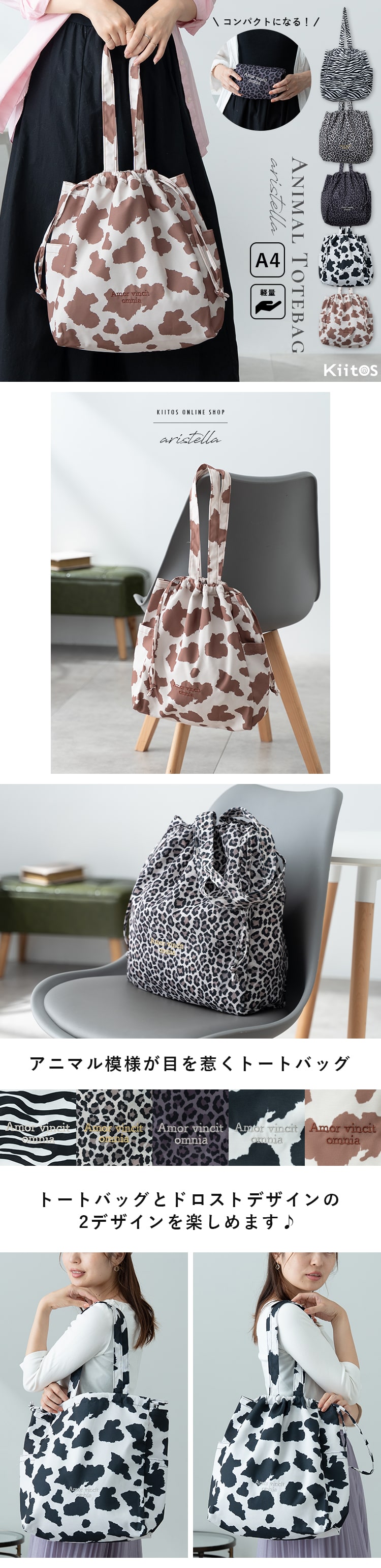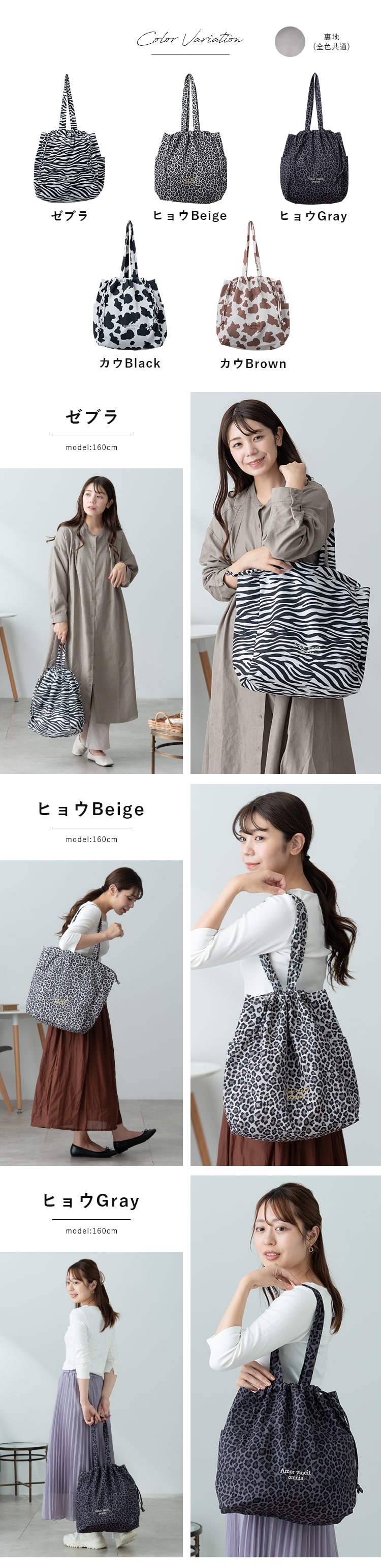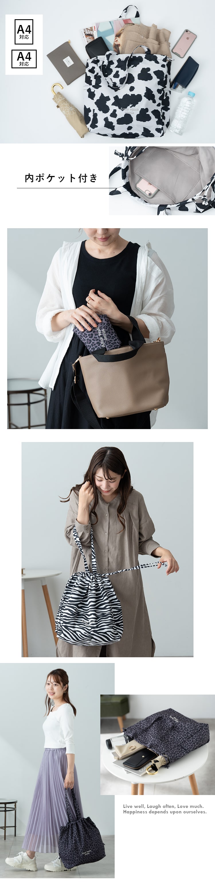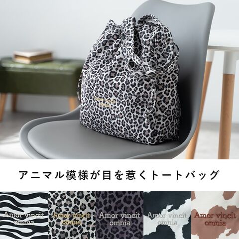 大人可愛いアニマルプリントを落とし込んだ大容量で使いやすい巾着トート。