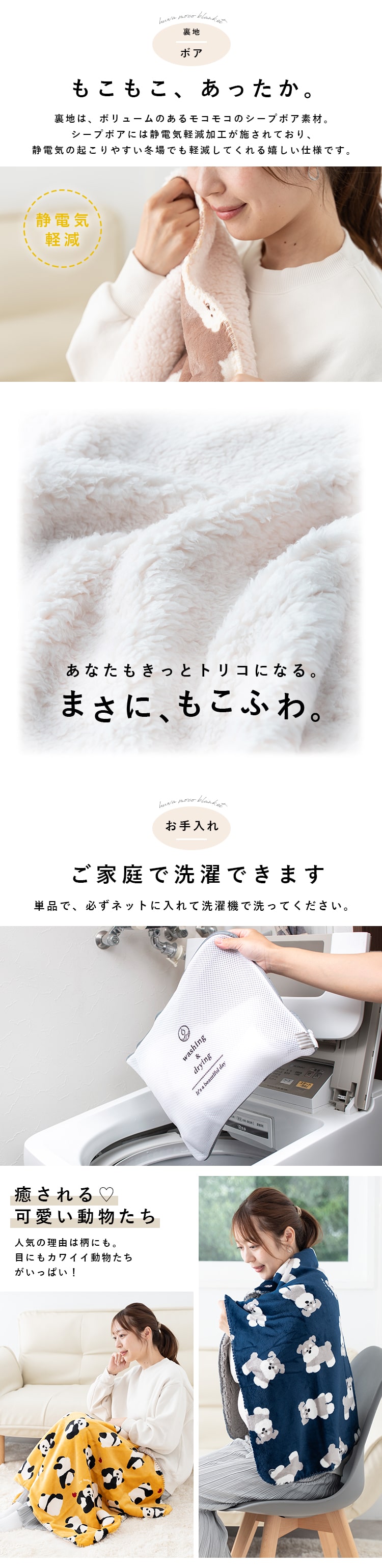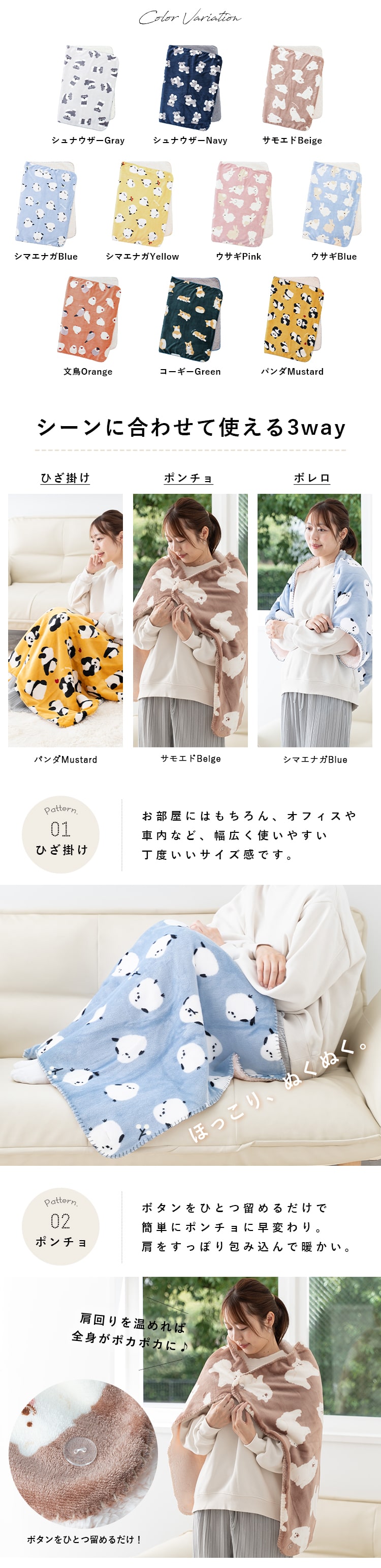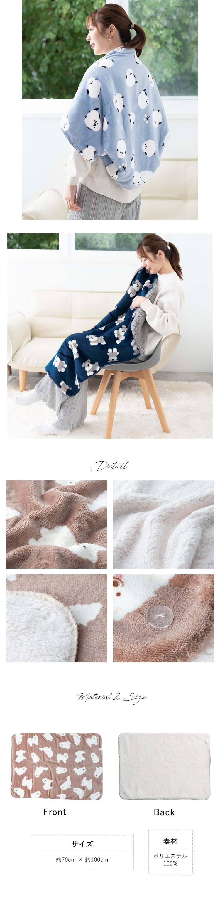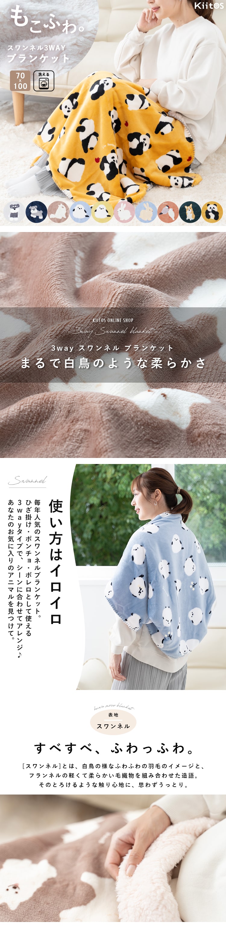 ブランケット ひざ掛け 100×70cm スワンネル 3way ポンチョ ボレロ ボア 厚手 静電気軽減加工 洗える かわいい おしゃれ 暖かい 冬 ギフト ウサギPink