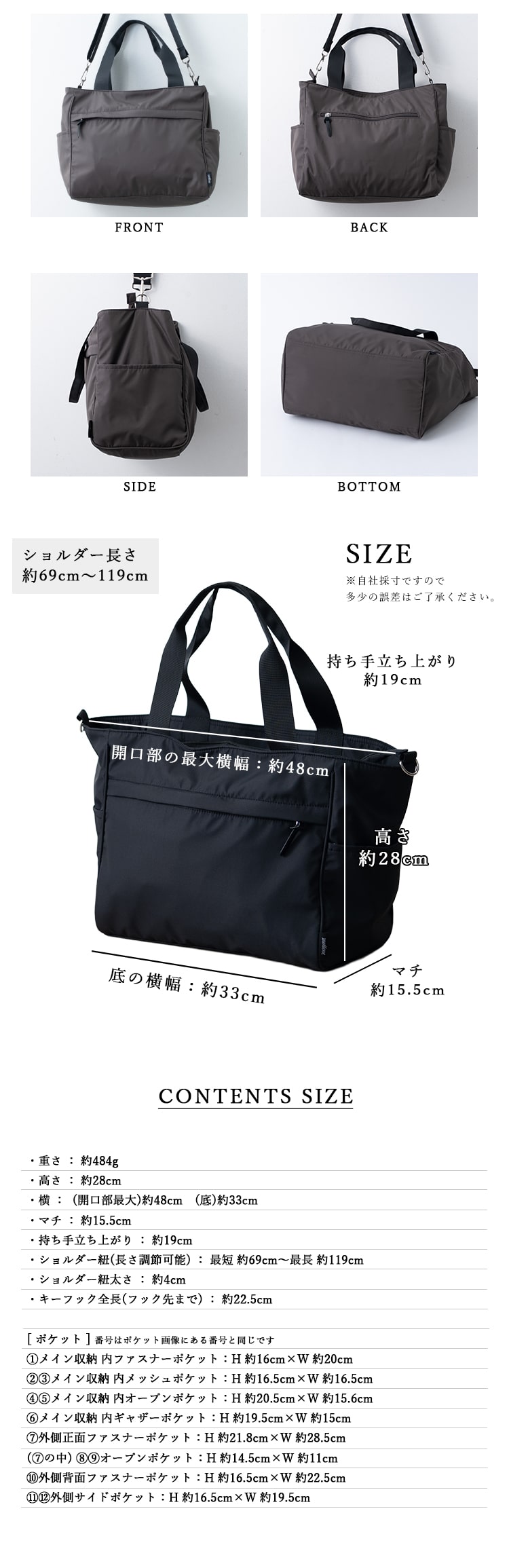 マザーズバッグ トートバッグ レディース ブランド モッテネ mottene a4 12ポケット 2way ショルダーバッグ 斜め掛け 大容量 おしゃれ 軽量 旅行 CharcoalGray