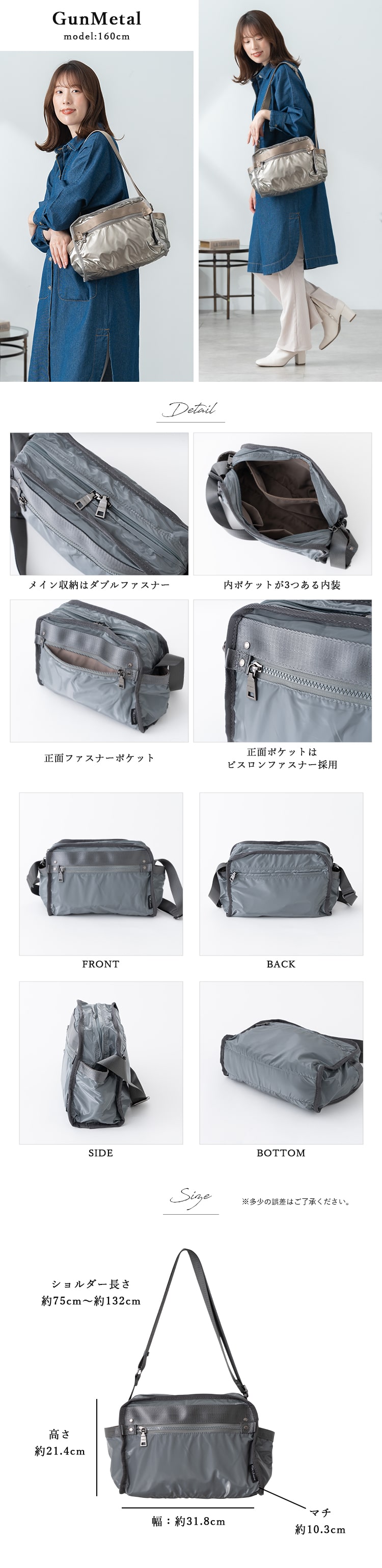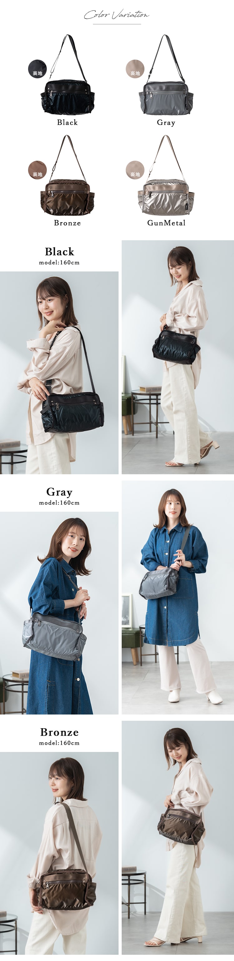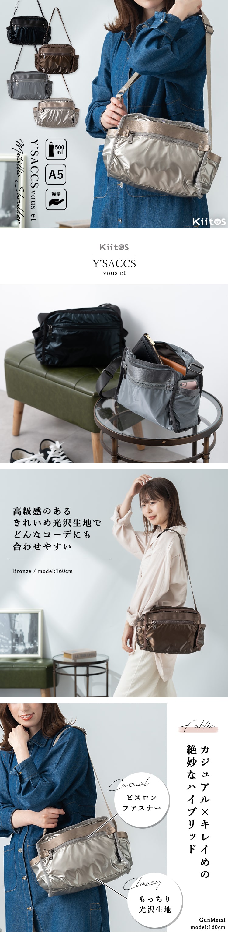 ショルダーバッグ レディース ブランド Y'SACCS vous et ナイロン 小さめ 斜め掛けバッグ 光沢 a5 通勤 通学 おしゃれ 大人 軽量 上品 自立 GunMetal