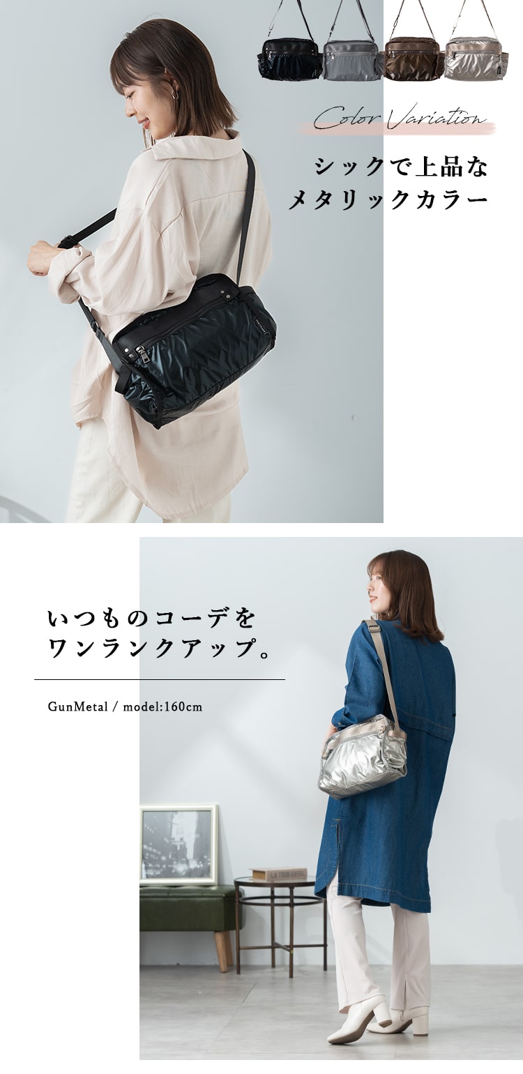 シックなメタリックカラーが大人可愛いショルダーバッグ。