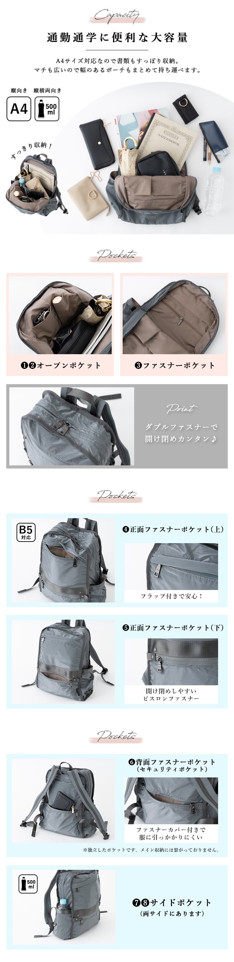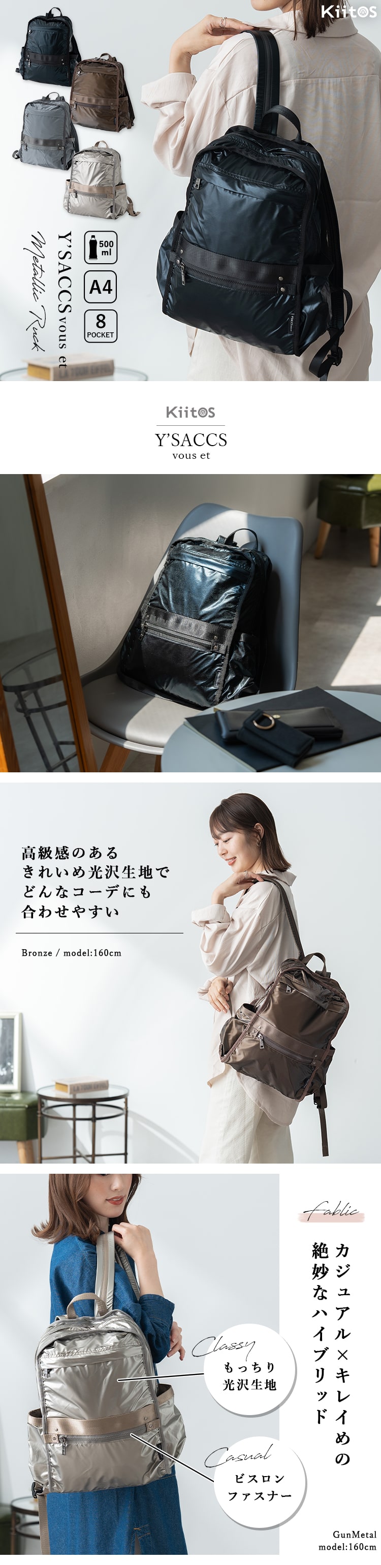 リュック レディース ブランド Y'SACCS vous et ナイロン a4 大容量 通勤 通学 おしゃれ 大人 軽量 背面ファスナー コンパクト 8ポケット Bronze