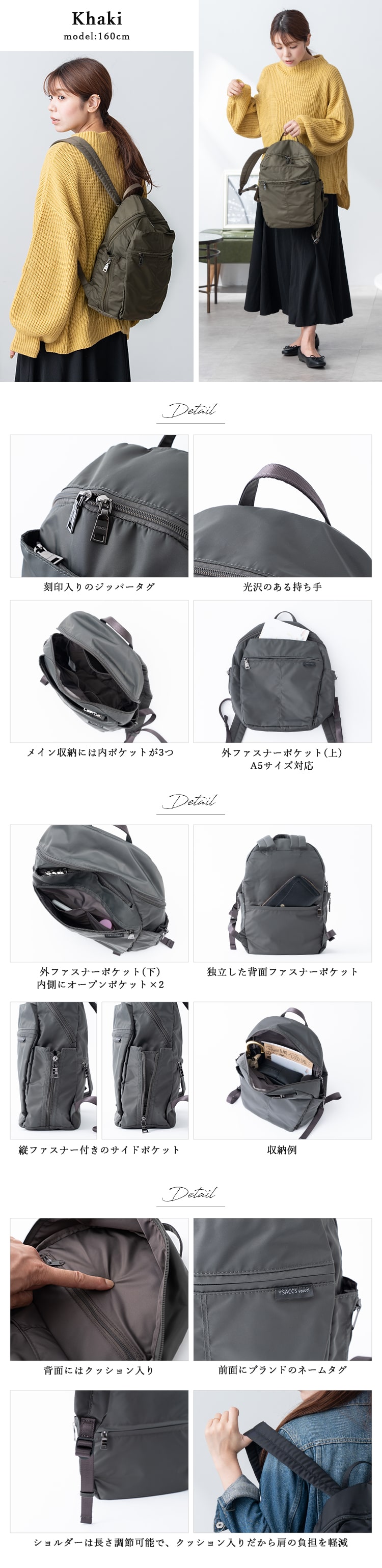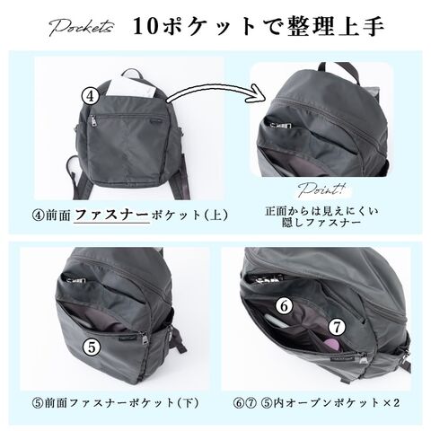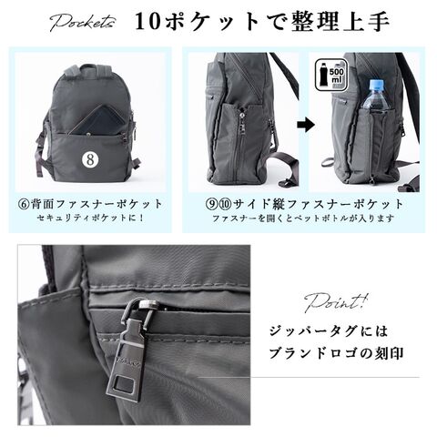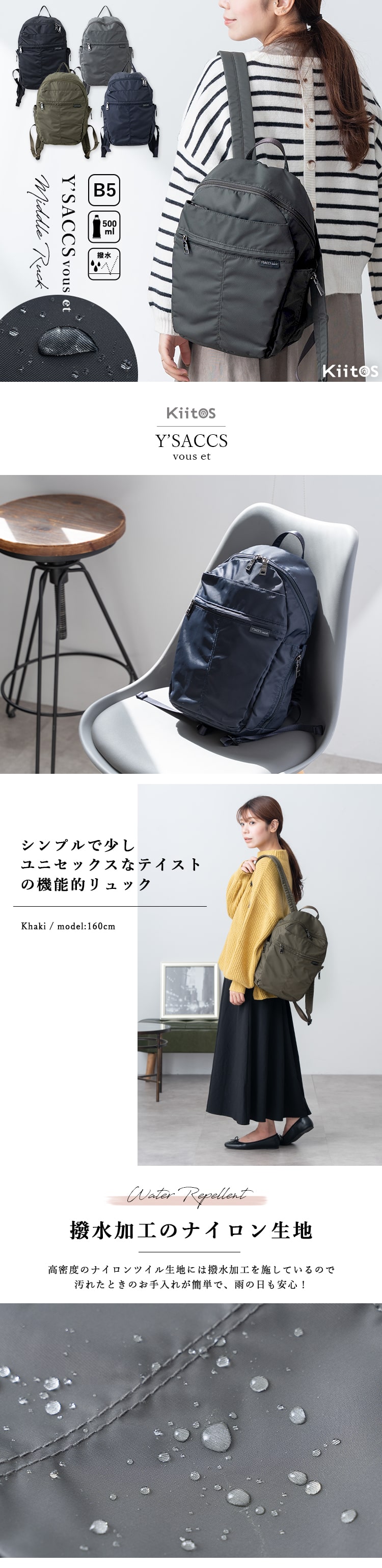 リュック レディース ブランド 通学 通勤 イザック b5 軽量 撥水 大容量 Y'SACCS vous et 10ポケット マザーズバッグ ナイロン 背面ポケット おしゃれ 大人 DarkGray