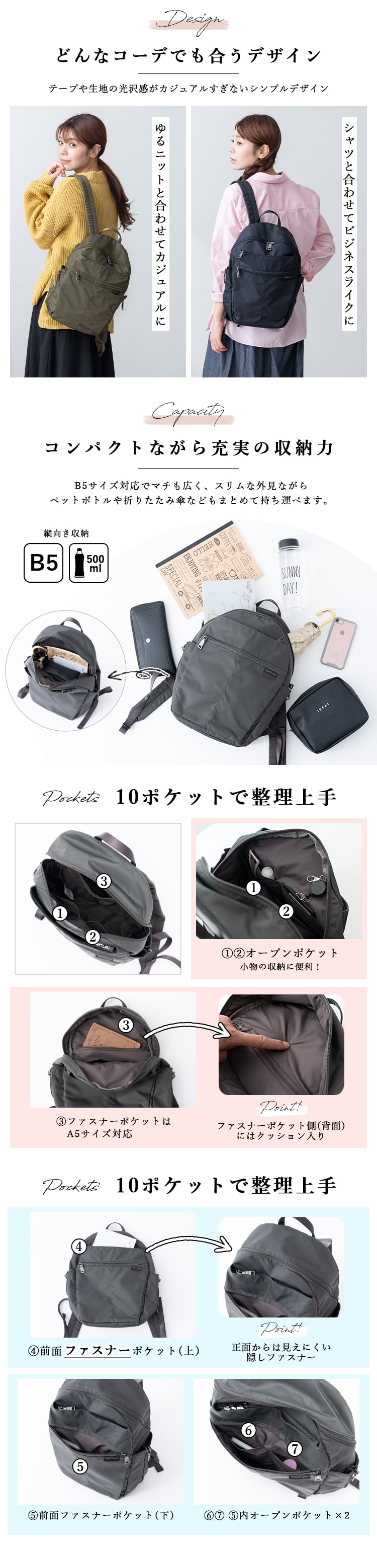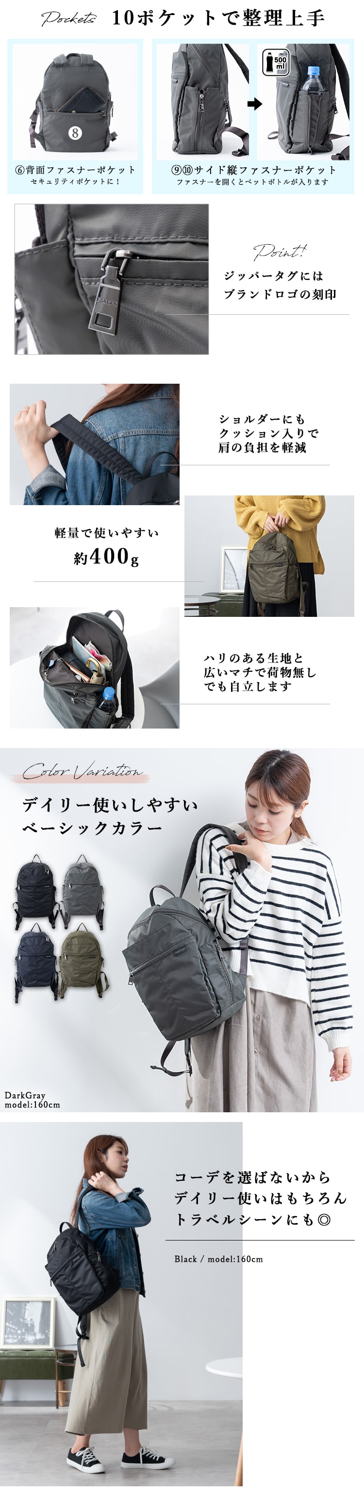 デイリー使いはもちろん、トラベルシーンにも使える万能リュックです。