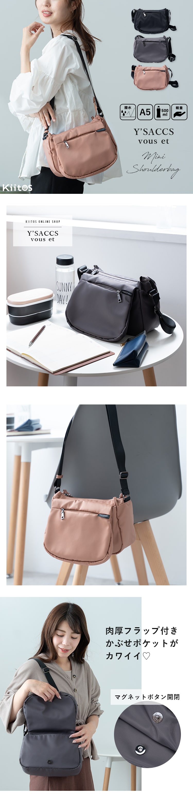 ショルダーバッグ レディース ブランド イザックヴーエ 小さめ おしゃれ a5 撥水 30代 40代 50代 PinkBeige