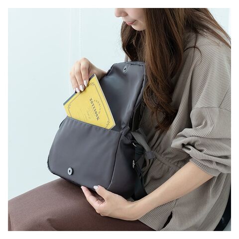 前面かぶせポケットはマチ付きで収納力があり、6つのポケットで整理整頓もラクラク。