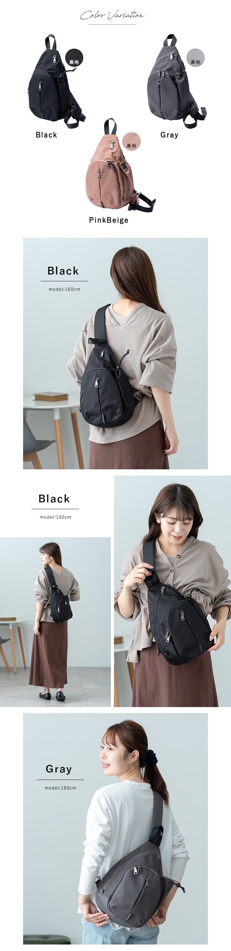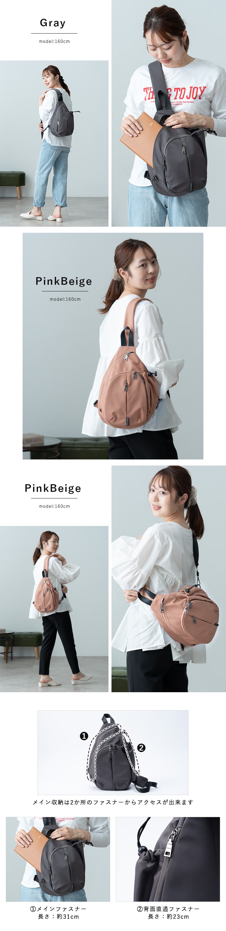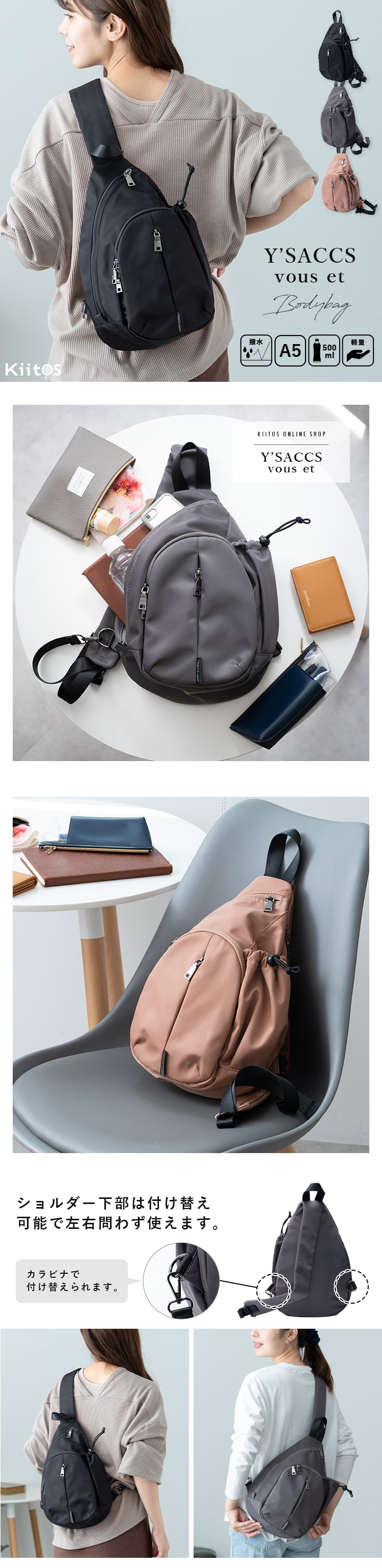 肌馴染みの良いカラー展開で、どんなコーデにも合わせやすく、通勤通学や旅行などどんなシーンでも活躍間違いなしのボディバッグです。