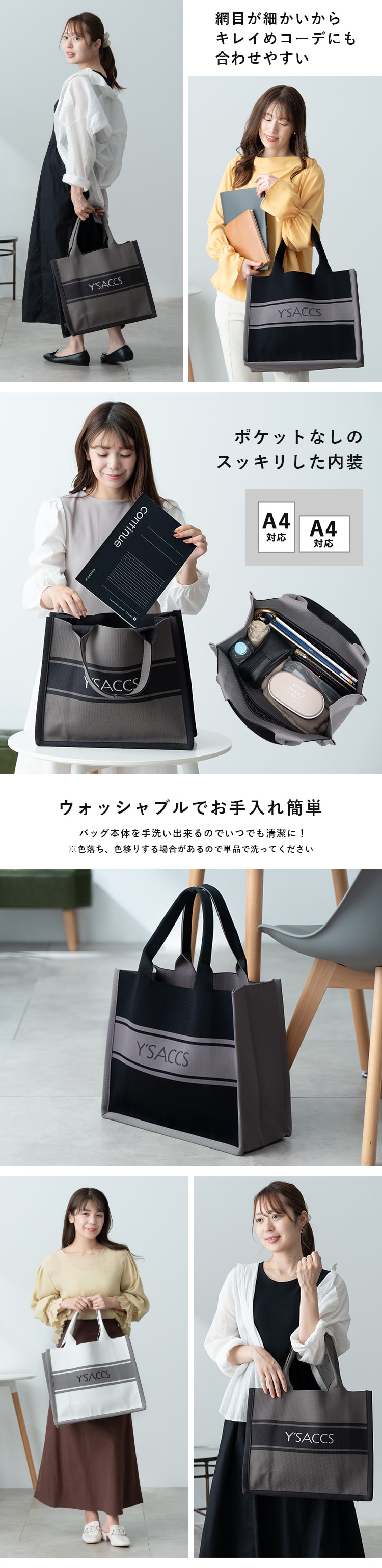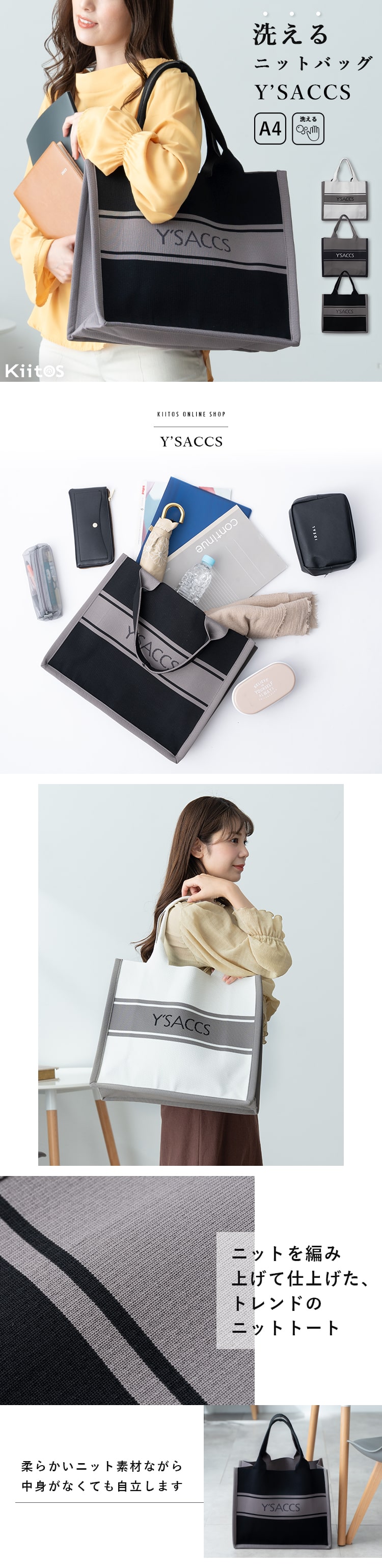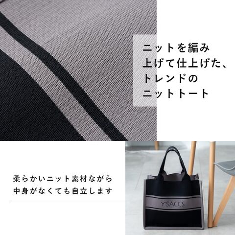 トートバッグ レディース ブランド イザック ニット 洗える 大容量 a4 おしゃれ 上品 自立 肩掛け マチ広 軽量 スクエア Gray