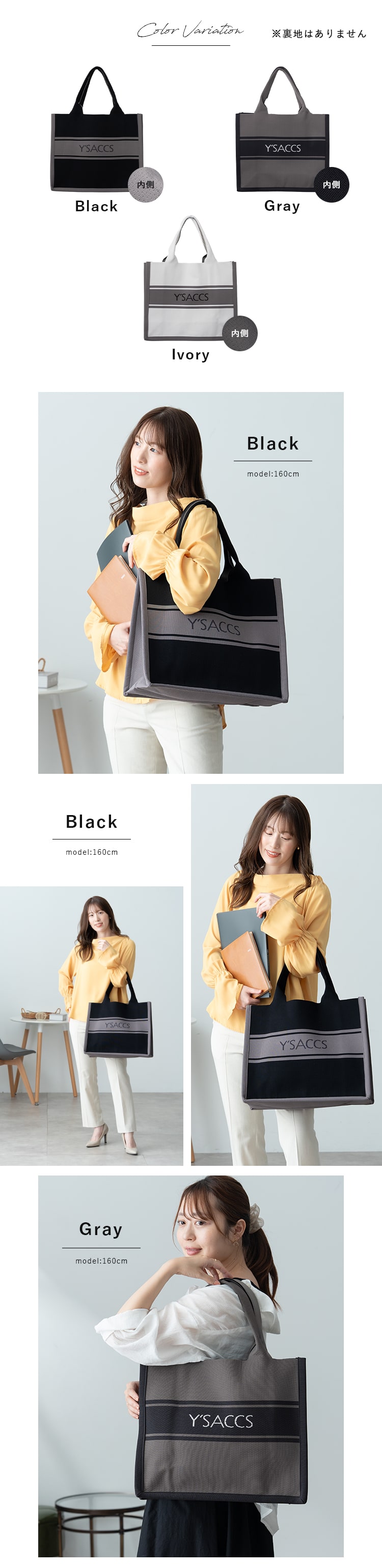 プライベートからビジネスシーンまで幅広く使える大きめトートバッグです。
