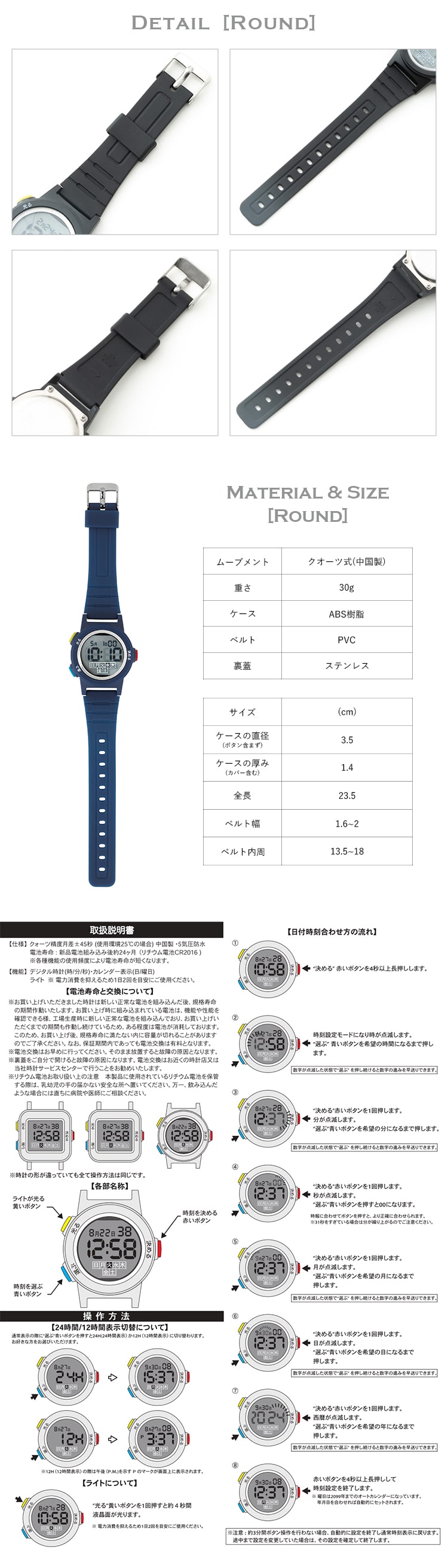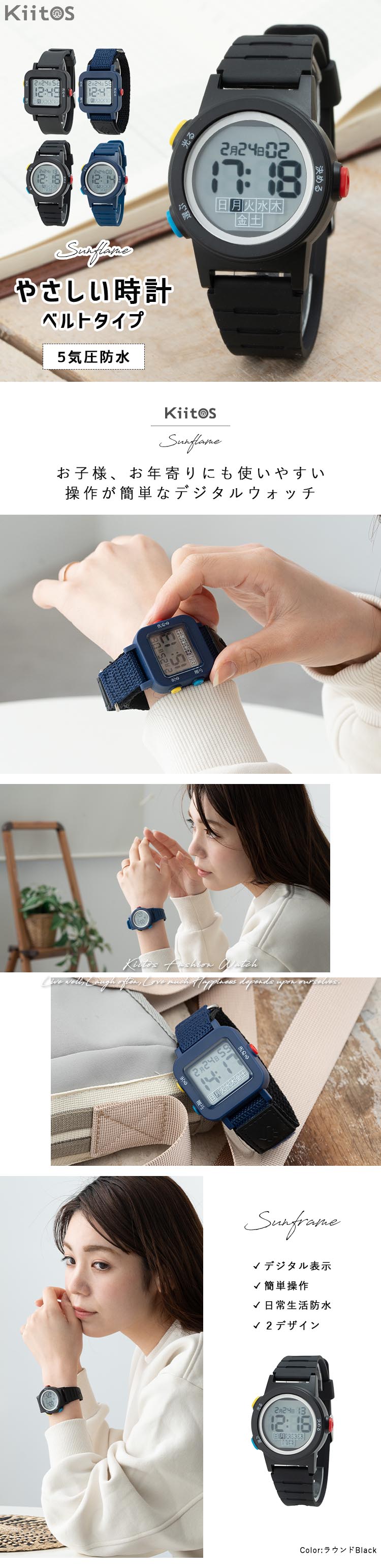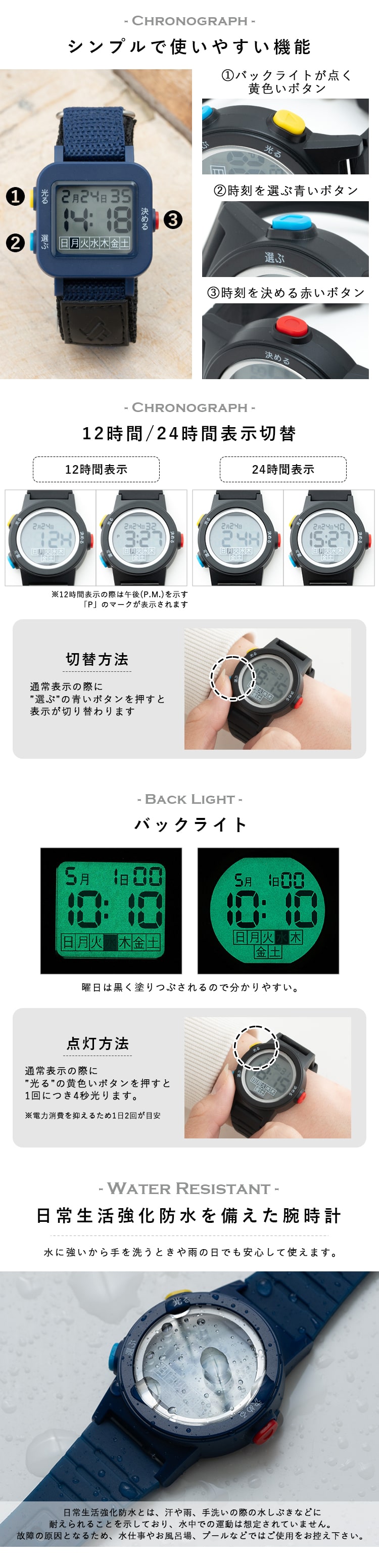 お子様、お年寄りにも使いやすい。操作が簡単なデジタルウォッチ。