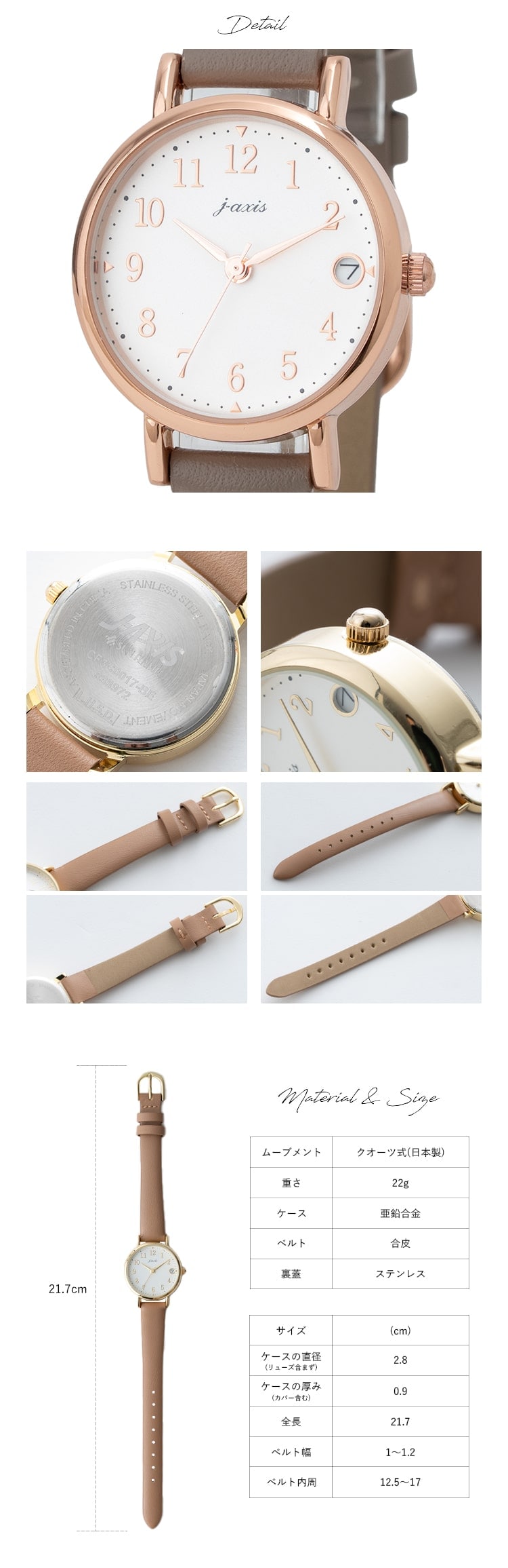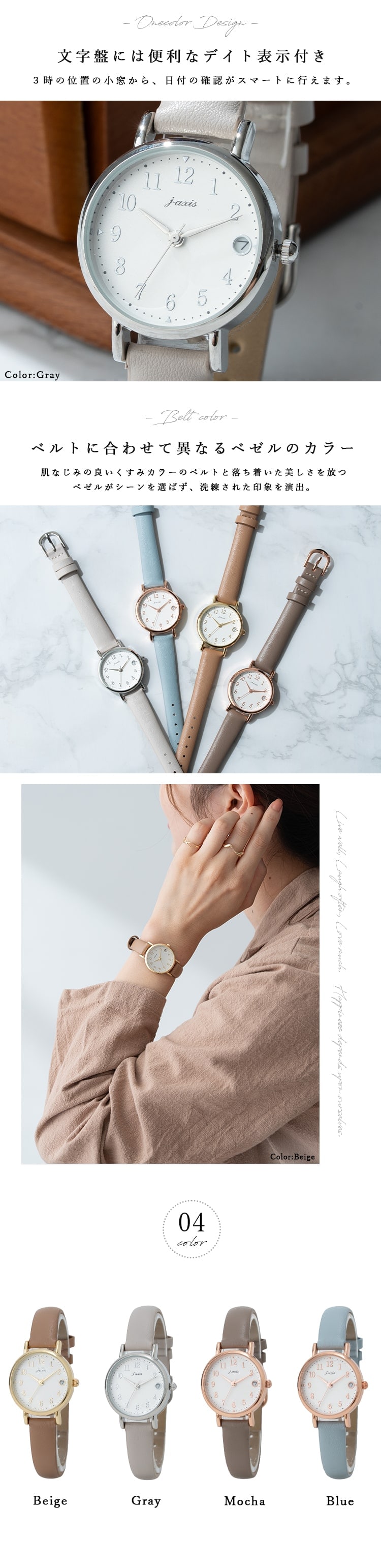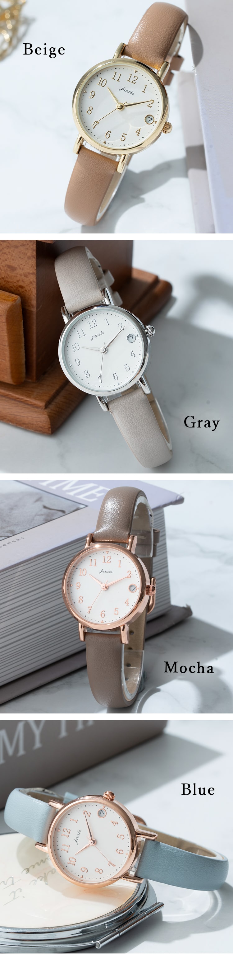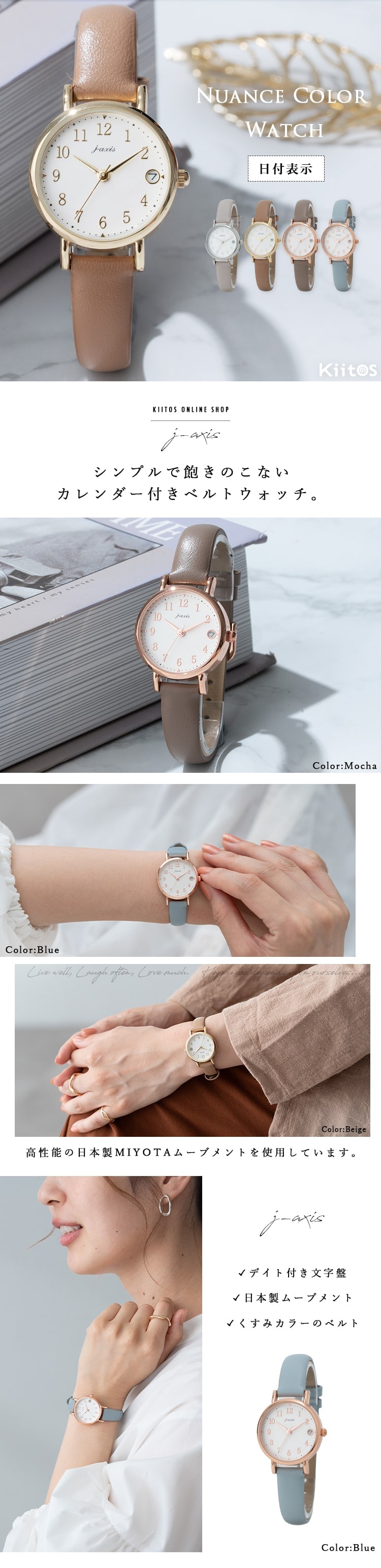 腕時計 レディース ブランド カレンダー くすみカラー シンプル おしゃれ 仕事 学生 受験 20代 30代 40代 ギフト 1年間のメーカー保証付 Beige