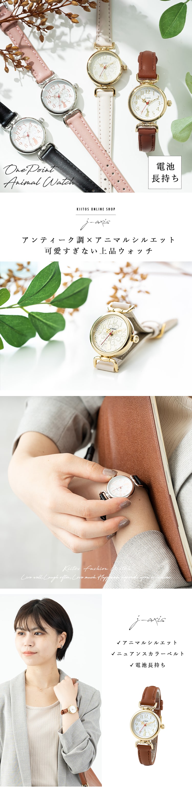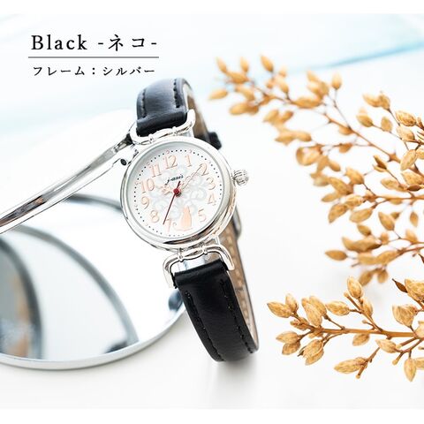 腕時計 レディース アンティーク調 J-axis アニマルシルエット かわいい おしゃれ ギフト プレゼント 1年間のメーカー保証付 メール便送料無料 Black