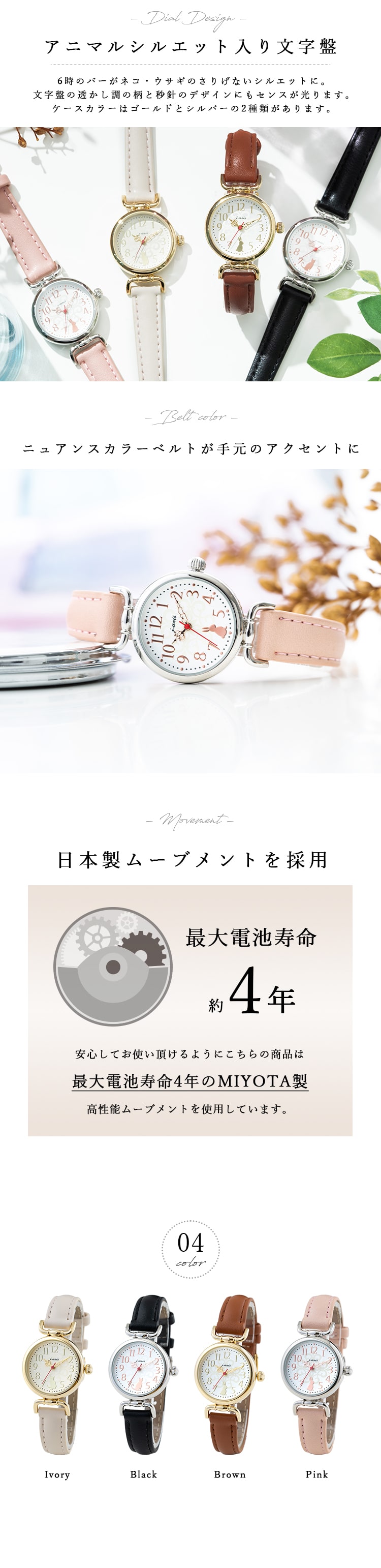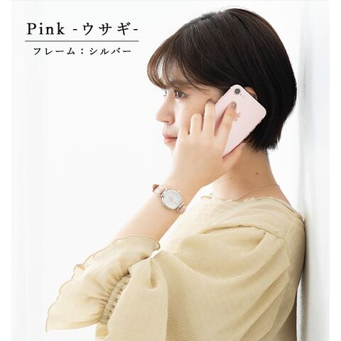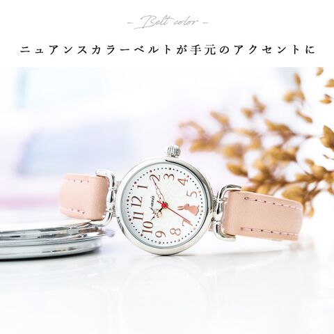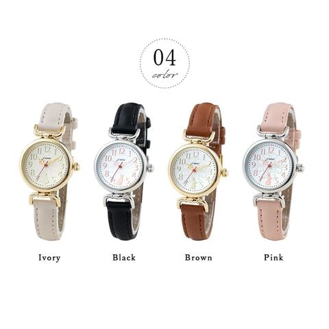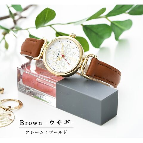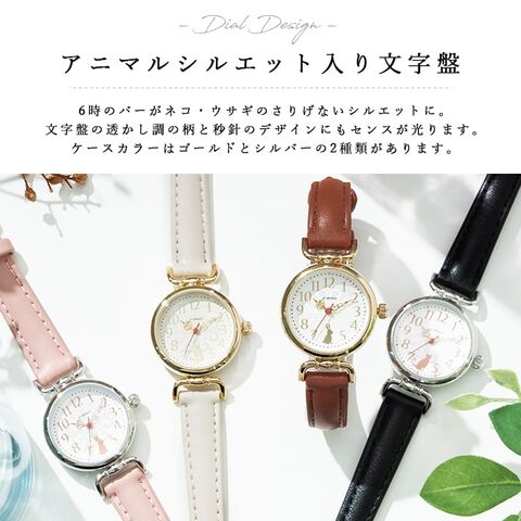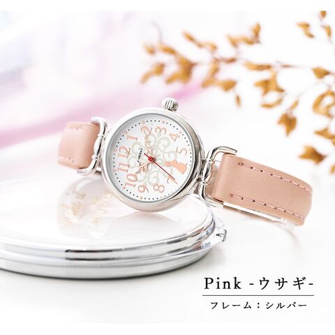 文字盤には透かし調の柄に、猫とウサギがちょこんと座っている