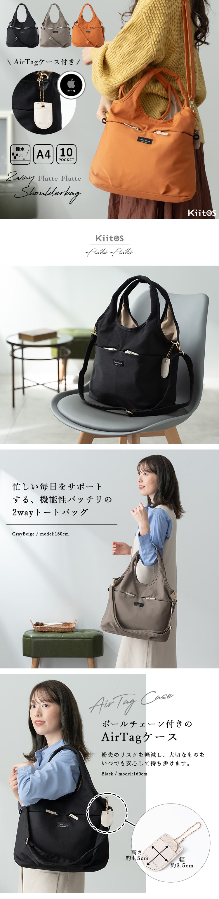 AirTagが収納できるバッグチャーム付きで、紛失のリスクを軽減し、大切なものをいつでも安心して持ち歩けます。