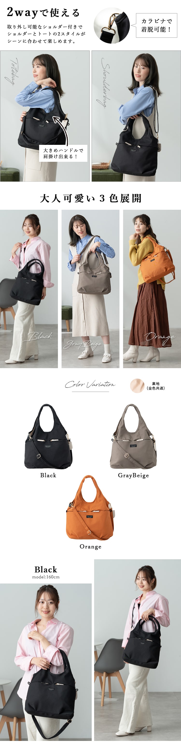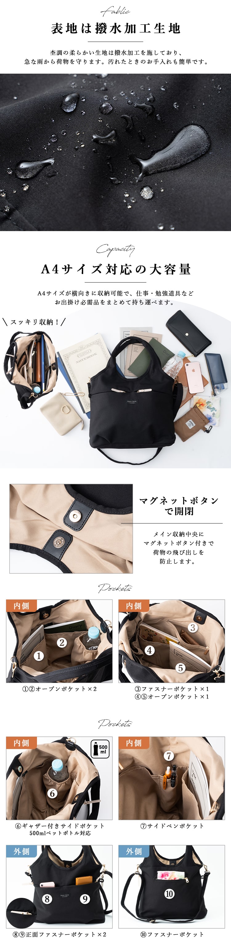 忙しい毎日をサポートする、機能性バッチリの2wayトートバッグ。