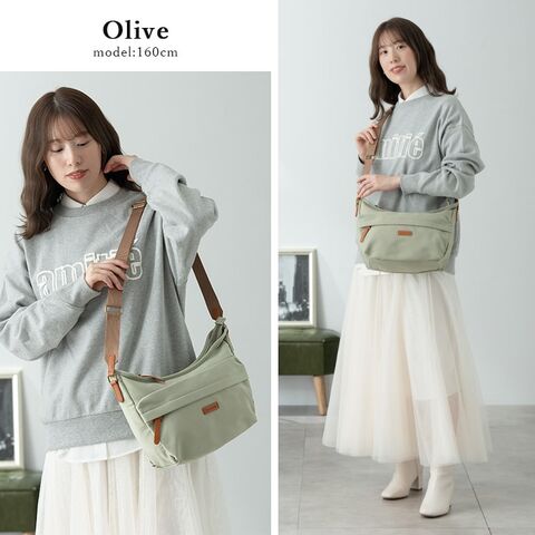 ナチュラルテイストにレザー調のワンポイントで上品さをプラスした大人のショルダーバッグ。