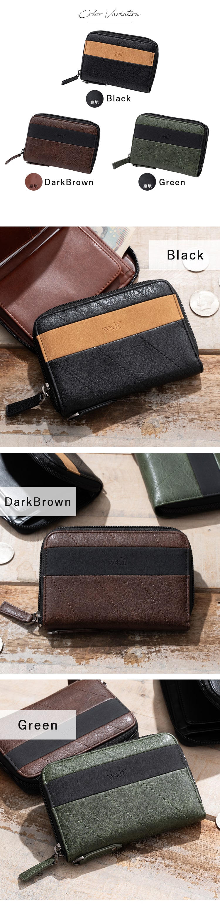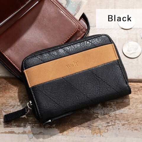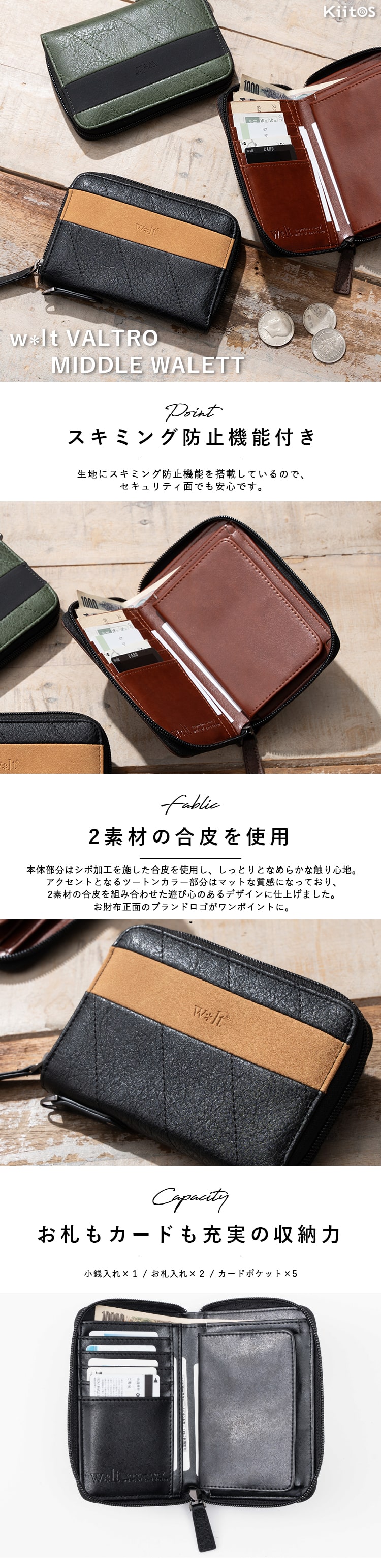 財布 メンズ 二つ折り l字ファスナー ブランド コンパクト おしゃれ walt 小銭入れ 高校生 中学生 スキミング防止 軽い カジュアル ギフト Black