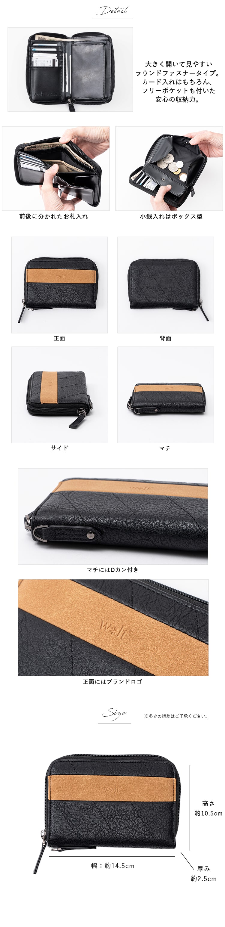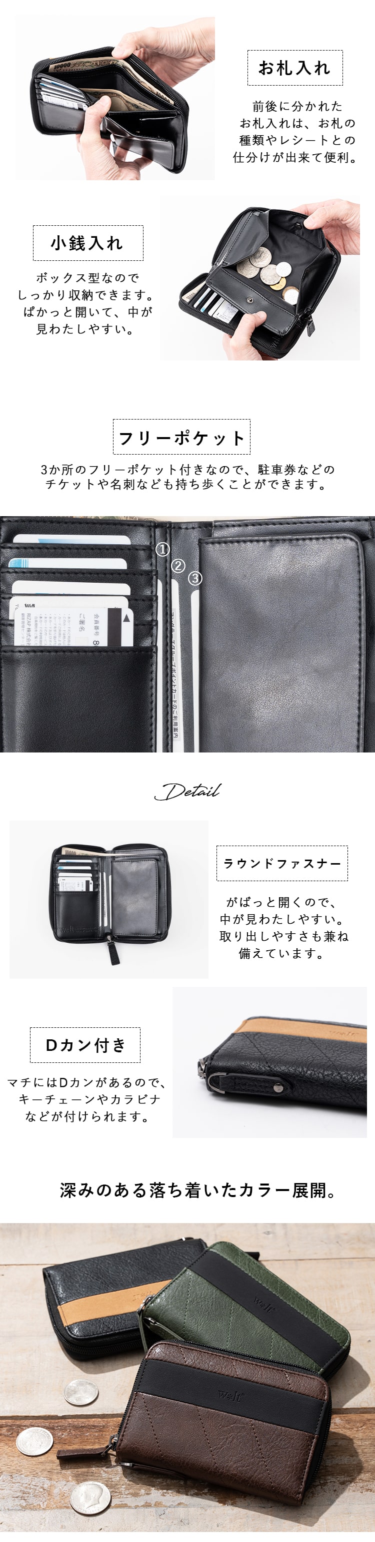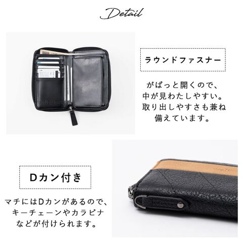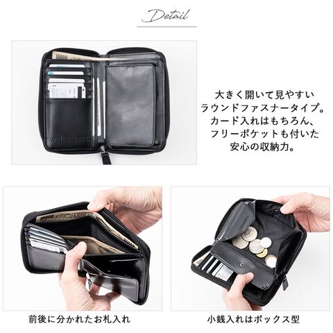 がばっと開くラウンドファスナータイプなので、お財布全体が見渡しやすく、中身が取り出しやすくなっています。
