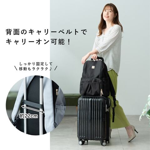 背面にキャリーベルトがあるのでスーツケースに固定してキャリーオンも可能。