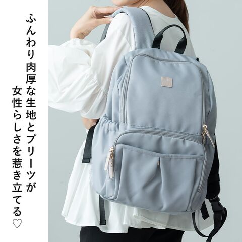 ふんわり肉厚な生地とプリーツが女性らしさを惹き立てるリュック。
